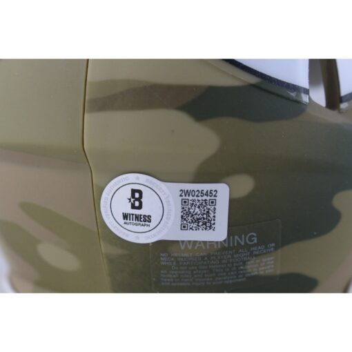 This is a Minnesota Vikings Camo Mini Helmet that was personally autographed by Adrian Peterson. Includes a certificate of authenticity from Beckett Authentication Services (BAS) and Denver Autographs.