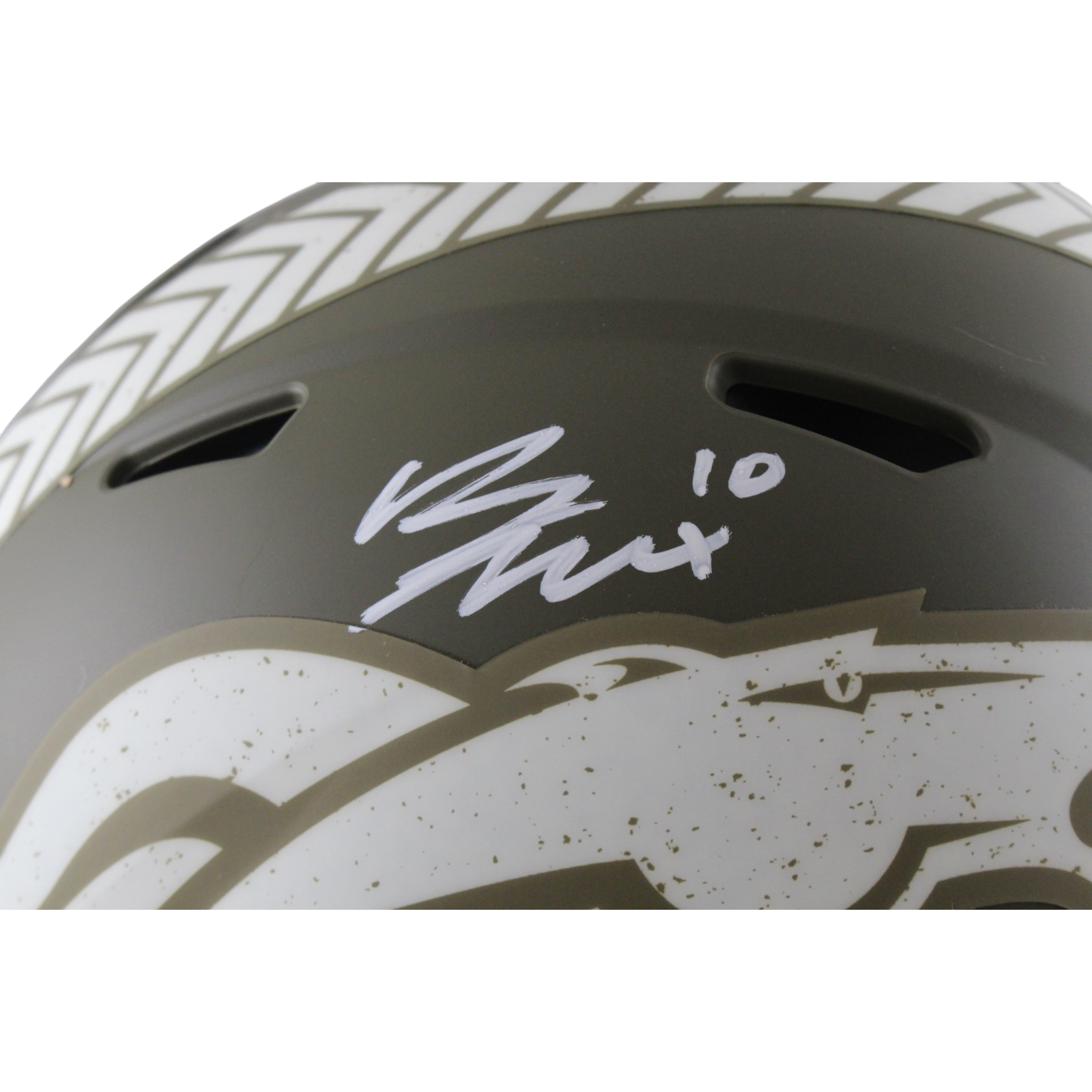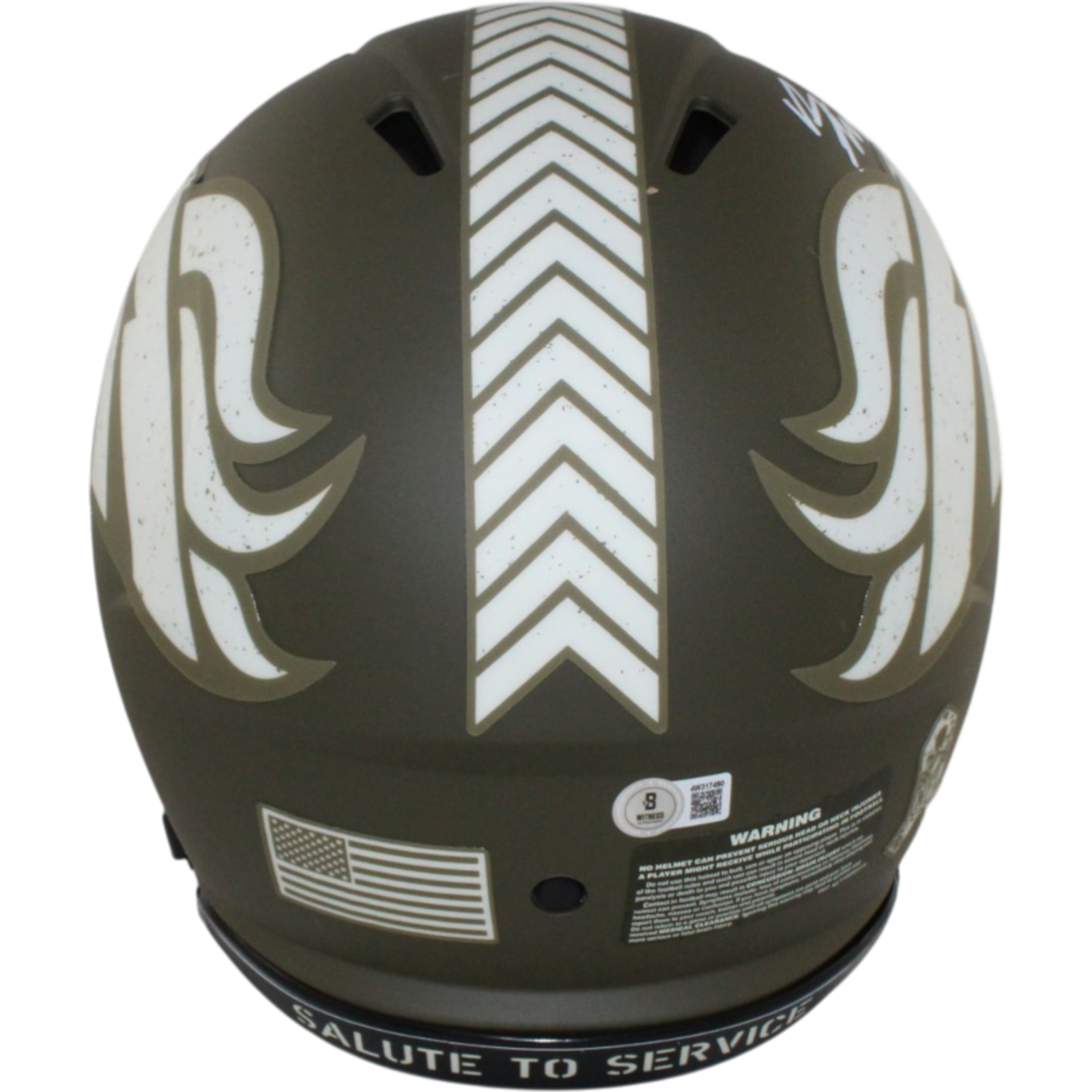 The number in the listing title is just an inventory sku for our records and is not the authentication number. The item pictured is a stock photo. There are multiple quanities of this item. Each of these items is unique because they are individually hand-signed. While the photographs accurately represent the item itself, please note that the signature’s size, exact placement, and strength may differ on the one you receive. This is a Denver Broncos Full Size Authentic 2022 Salute to Service Helmet that was personally autographed by Bo Nix. Includes a certificate of authenticity / hologram from Beckett Authentication Services (BAS) and Denver Autographs. This is a BAS Witnessed Protection Program item which means a Beckett Authentication Service representative was present when this item was being signed. FREE SHIPPING within the USA on orders over $99!