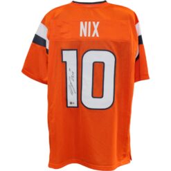The number in the listing title is just an inventory sku for our records and is not the authentication number. The item pictured is a stock photo. There are multiple quanities of this item. Each of these items is unique because they are individually hand-signed. While the photographs accurately represent the item itself, please note that the signature’s size, exact placement, and strength may differ on the one you receive. This is a Pro Style Size XL Orange Jersey with sewn on numbers that was personally autographed by Bo Nix. Includes a certificate of authenticity / hologram from Beckett Authentication Services (BAS) and Denver Autographs. FREE SHIPPING within the USA on orders over $99!