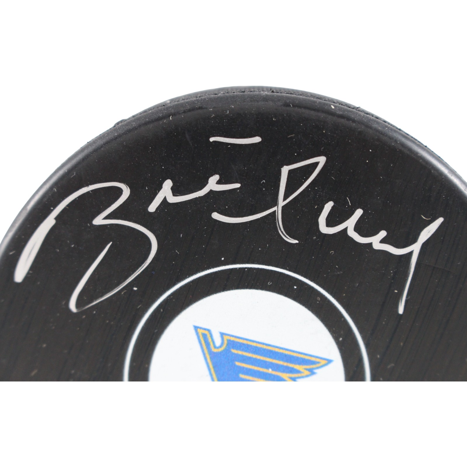 Brett Hull Autographed/Signed St Louis Blues Logo Puck Beckett 53406