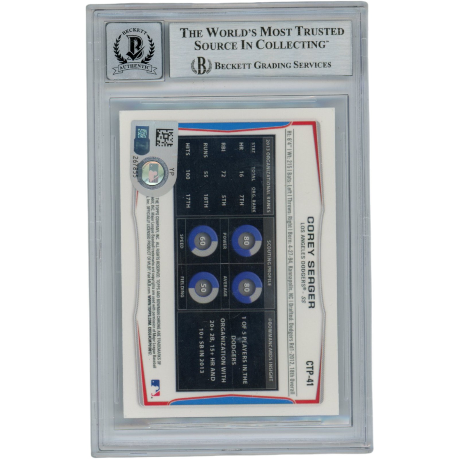 Corey Seager Autographed 2014 Bowman Chrome #CTTP41 Slabbed Card Beckett 54578