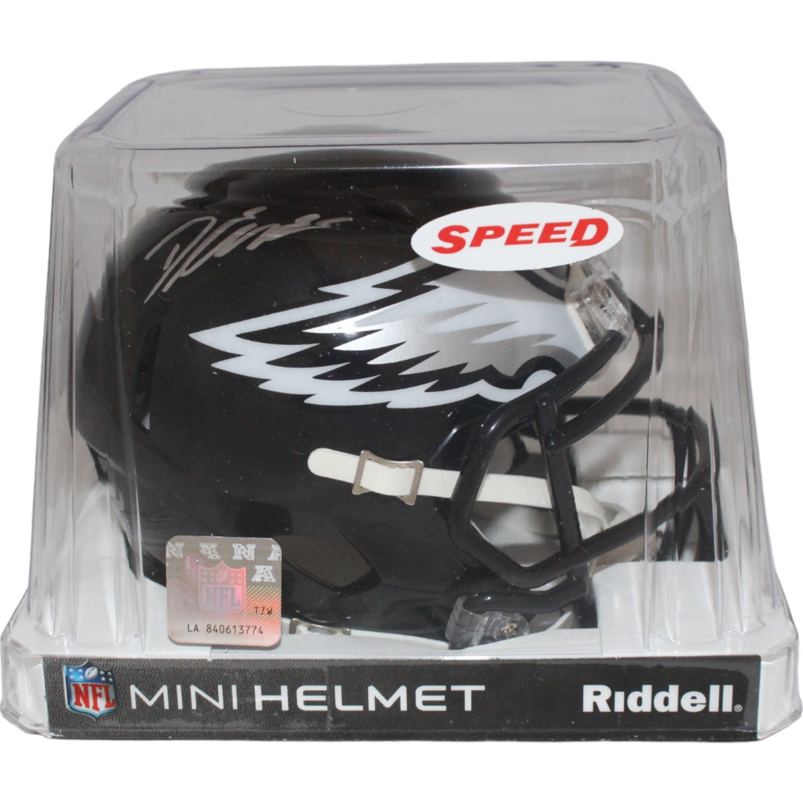 This is a Philadelphia Eagles 2022 Alternate Mini Helmet that was personally autographed by D’Andre Swift. Includes a certificate of authenticity from Beckett Authentication Services (BAS) and Denver Autographs.