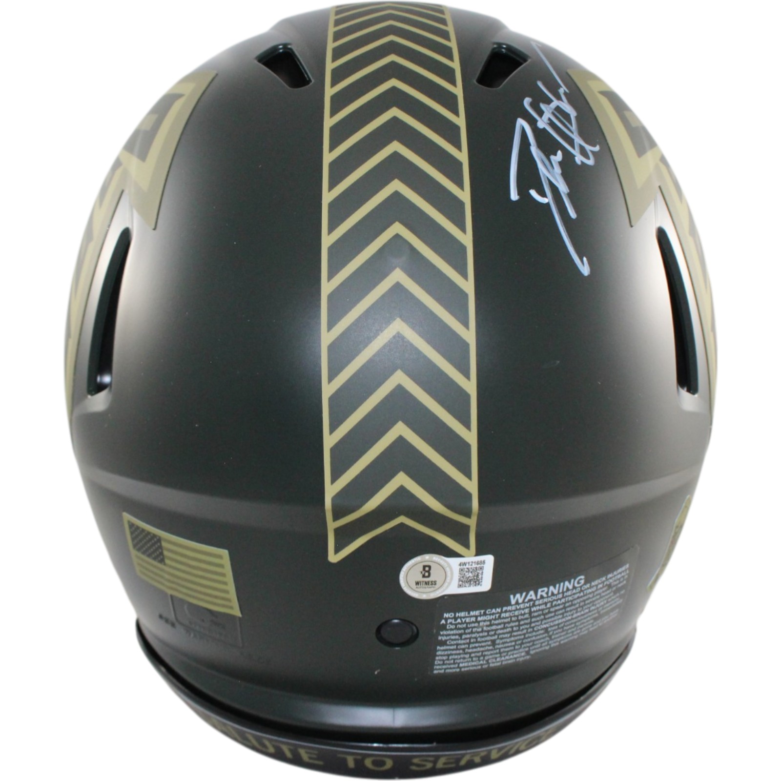 The number in the listing title is just an inventory sku for our records and is not the authentication number. The item pictured is a stock photo. There are multiple quanities of this item. Each of these items is unique because they are individually hand-signed. While the photographs accurately represent the item itself, please note that the signature’s size, exact placement, and strength may differ on the one you receive. This is a Atlanta Falcons Full Size Authentic 2025 Salute to Service Helmet that was personally autographed by Deion Sanders. Includes a certificate of authenticity / hologram from Beckett Authentication Services (BAS) and Denver Autographs. This is a BAS Witnessed Protection Program item which means a Beckett Authentication Service representative was present when this item was being signed. FREE SHIPPING within the USA on orders over $99!