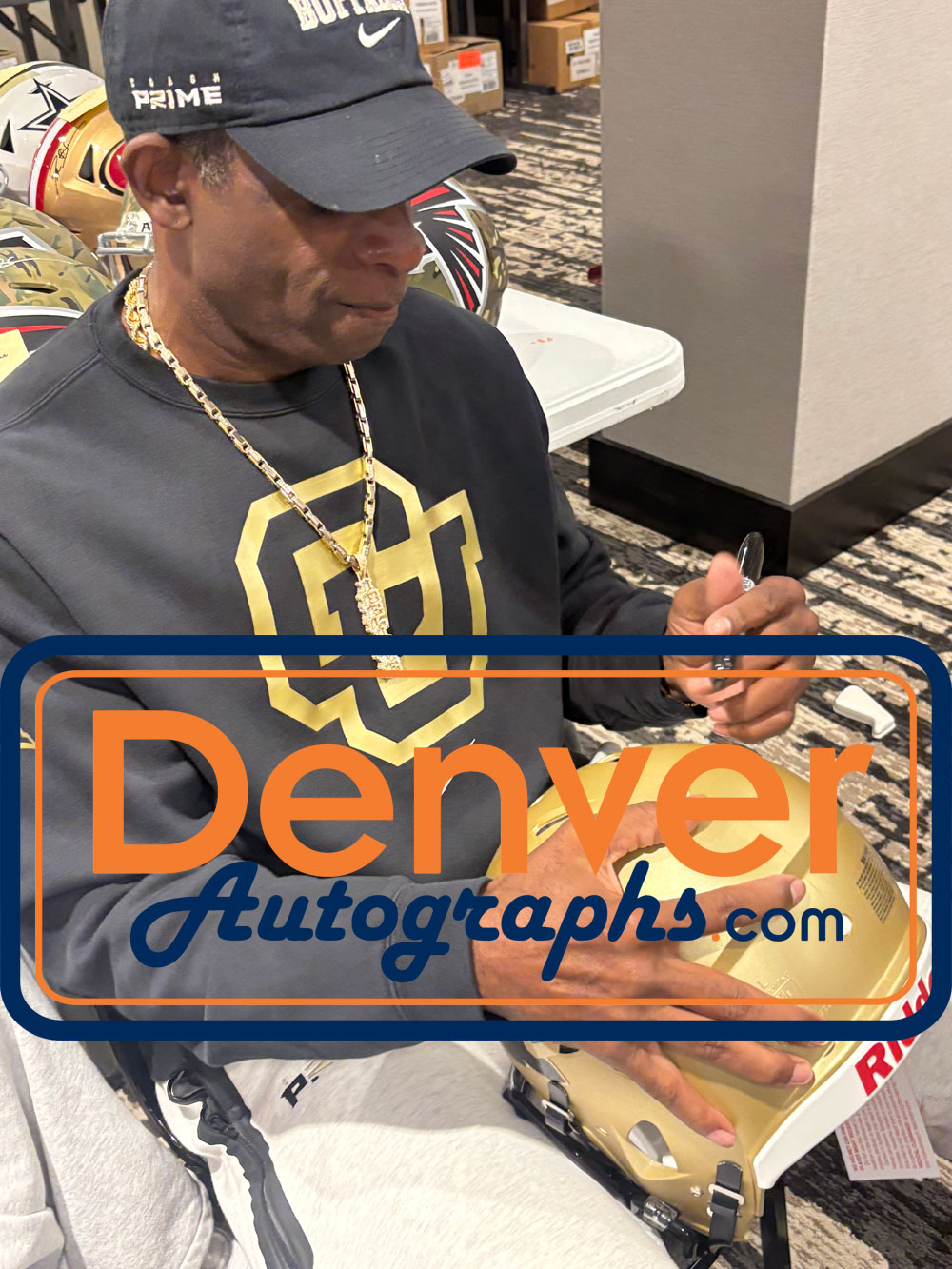 The number in the listing title is just an inventory sku for our records and is not the authentication number. The item pictured is a stock photo unless otherwise noted. This is a Colorado Buffaloes Full Size Authentic Gold Helmet that was personally autographed by Deion Sanders. Includes a certificate of authenticity from Beckett Authentication Services (BAS) and Denver Autographs.