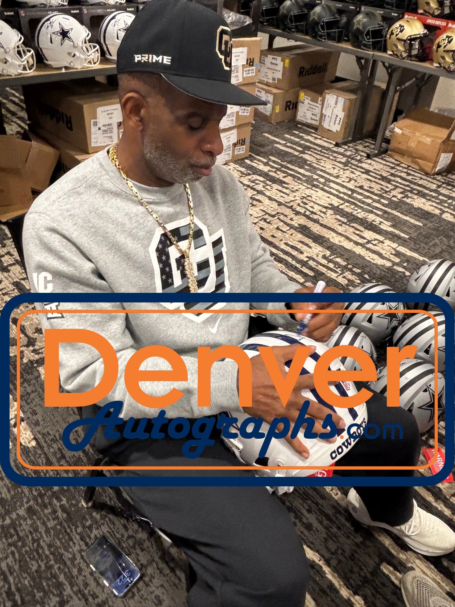 The number in the listing title is just an inventory sku for our records and is not the authentication number. The item pictured is a stock photo. There are multiple quanities of this item. Each of these items is unique because they are individually hand-signed. While the photographs accurately represent the item itself, please note that the signature’s size, exact placement, and strength may differ on the one you receive. This is a Dallas Cowboys Full Size Authentic 2022 Alternate Helmet that was personally autographed by Deion Sanders. Includes a certificate of authenticity / hologram from Beckett Authentication Services (BAS) and Denver Autographs. This is a BAS Witnessed Protection Program item which means a Beckett Authentication Service representative was present when this item was being signed. FREE SHIPPING within the USA on orders over $99!
