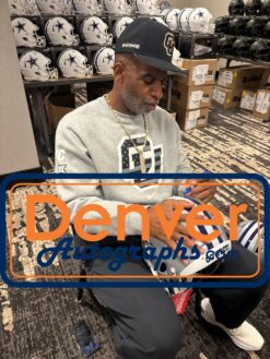 The number in the listing title is just an inventory sku for our records and is not the authentication number. The item pictured is a stock photo. There are multiple quanities of this item. Each of these items is unique because they are individually hand-signed. While the photographs accurately represent the item itself, please note that the signature’s size, exact placement, and strength may differ on the one you receive. This is a Dallas Cowboys Full Size Authentic Helmet that was personally autographed by Deion Sanders. Includes a certificate of authenticity / hologram from Beckett Authentication Services (BAS) and Denver Autographs. This is a BAS Witnessed Protection Program item which means a Beckett Authentication Service representative was present when this item was being signed. FREE SHIPPING within the USA on orders over $99!