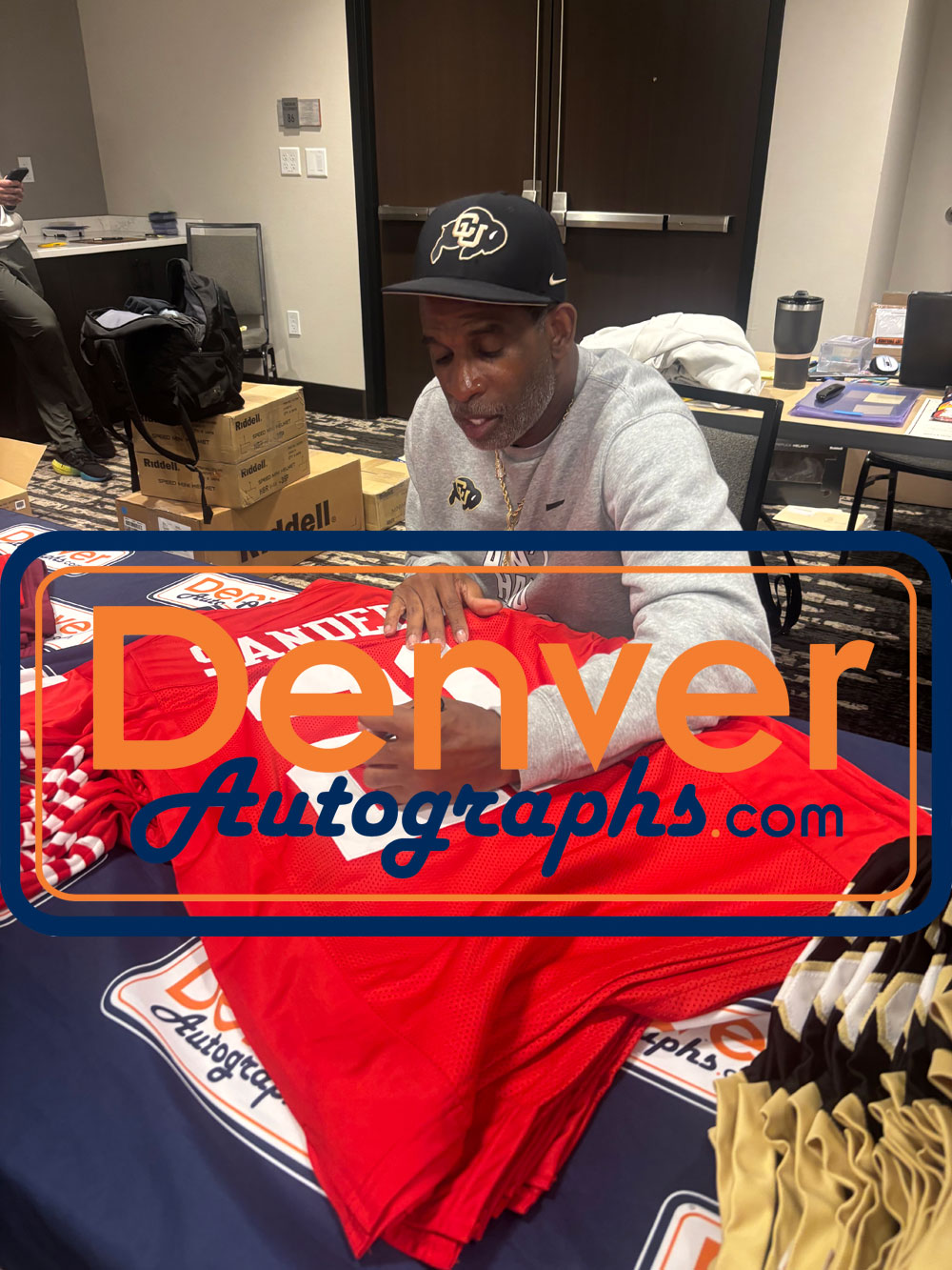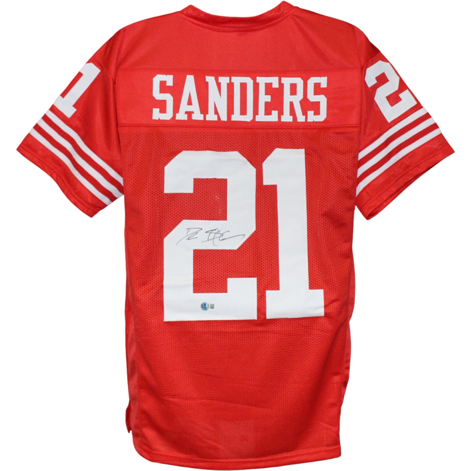 Deion Sanders Autographed/Signed Pro Style XL Red Jersey Beckett Witness 53325