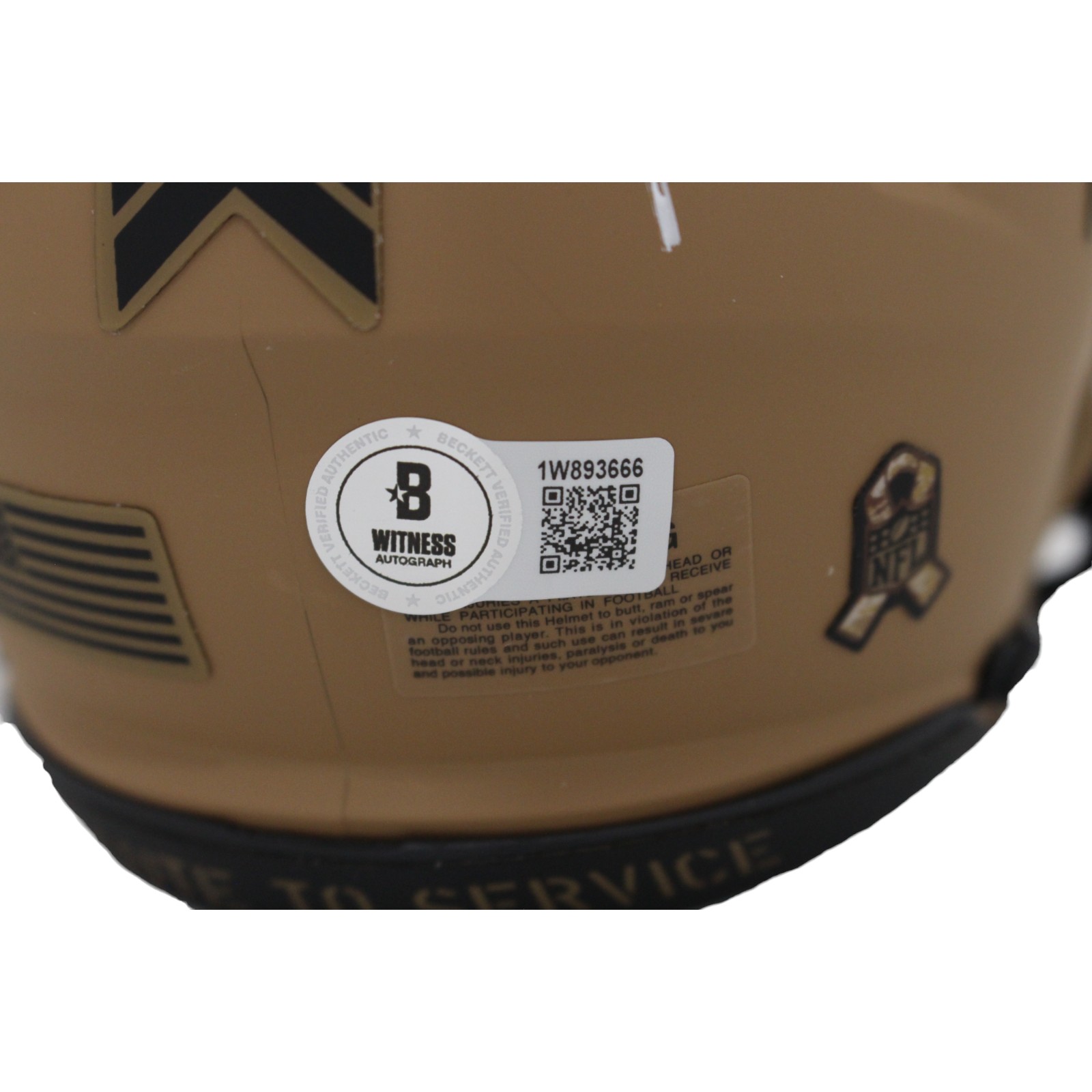 This is a Dallas Cowboys 2023 Salute to Service Mini Helmet that was personally autographed by Deion Sanders. Includes a certificate of authenticity from Beckett Authentication Services (BAS) and Denver Autographs.