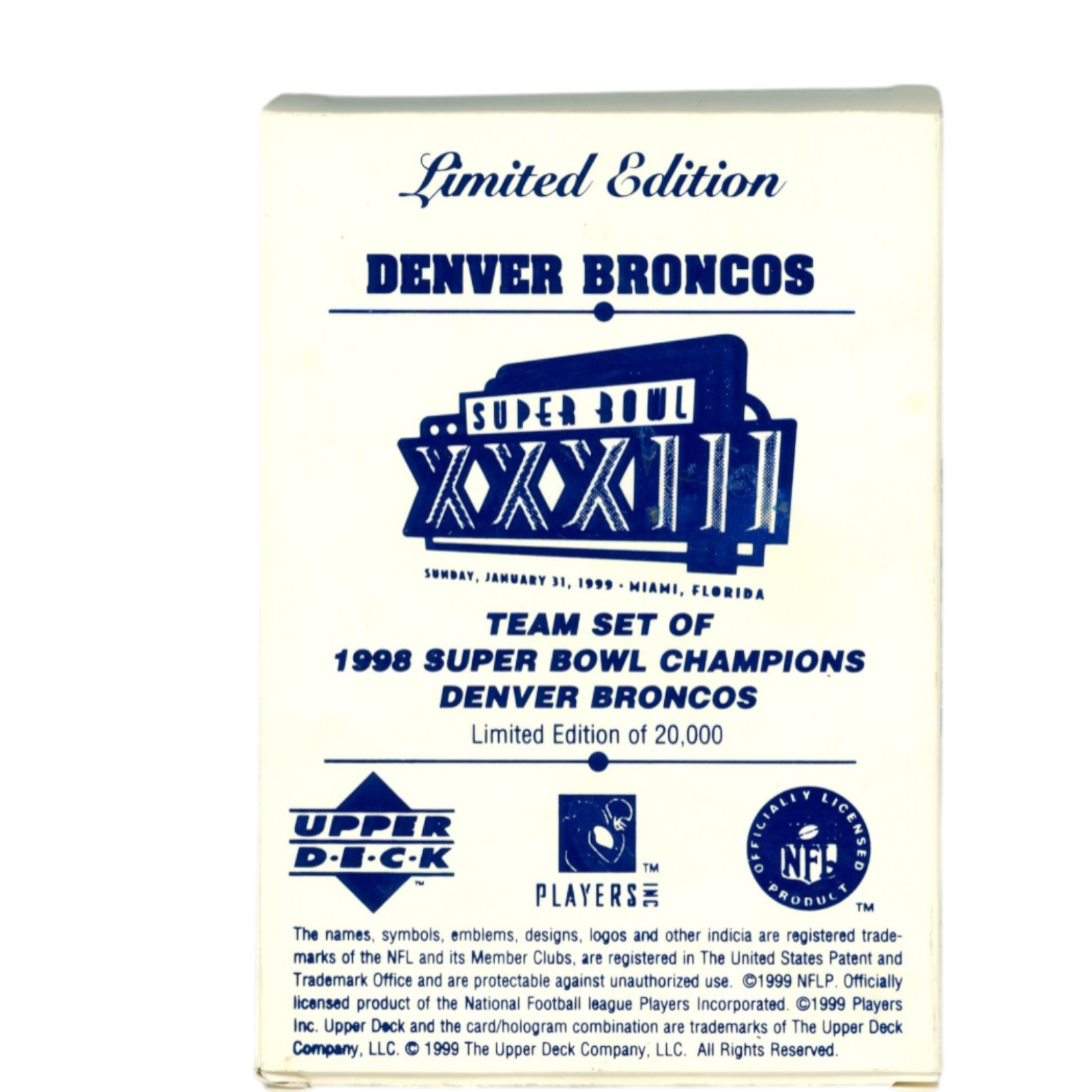 Denver Broncos 1998-99 Upper Deck Jumbo 12 Card Trading Card Set 55115