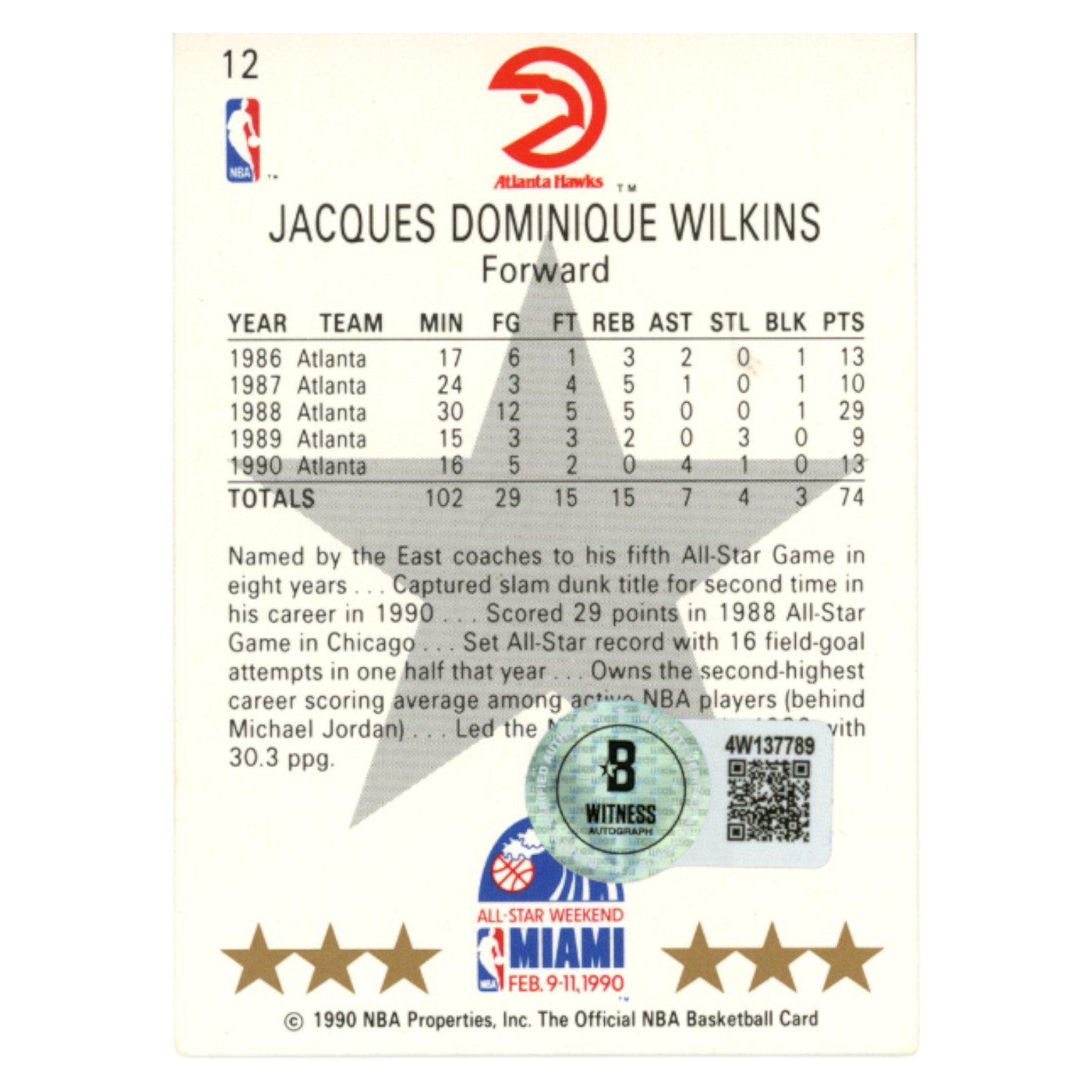 Dominique Wilkins Autographed 1990 NBA Hoops #12 Trading Card Beckett 54231