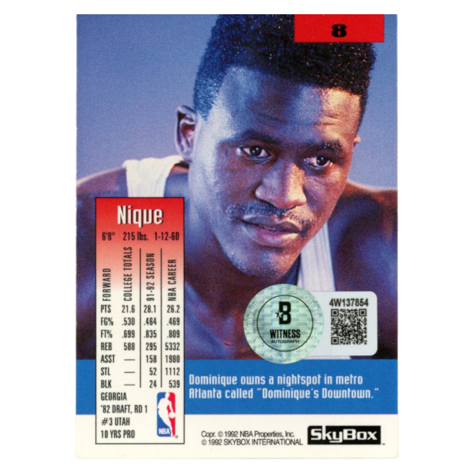 Dominique Wilkins Autographed 1992 SkyBox #8 Trading Card Beckett 54132