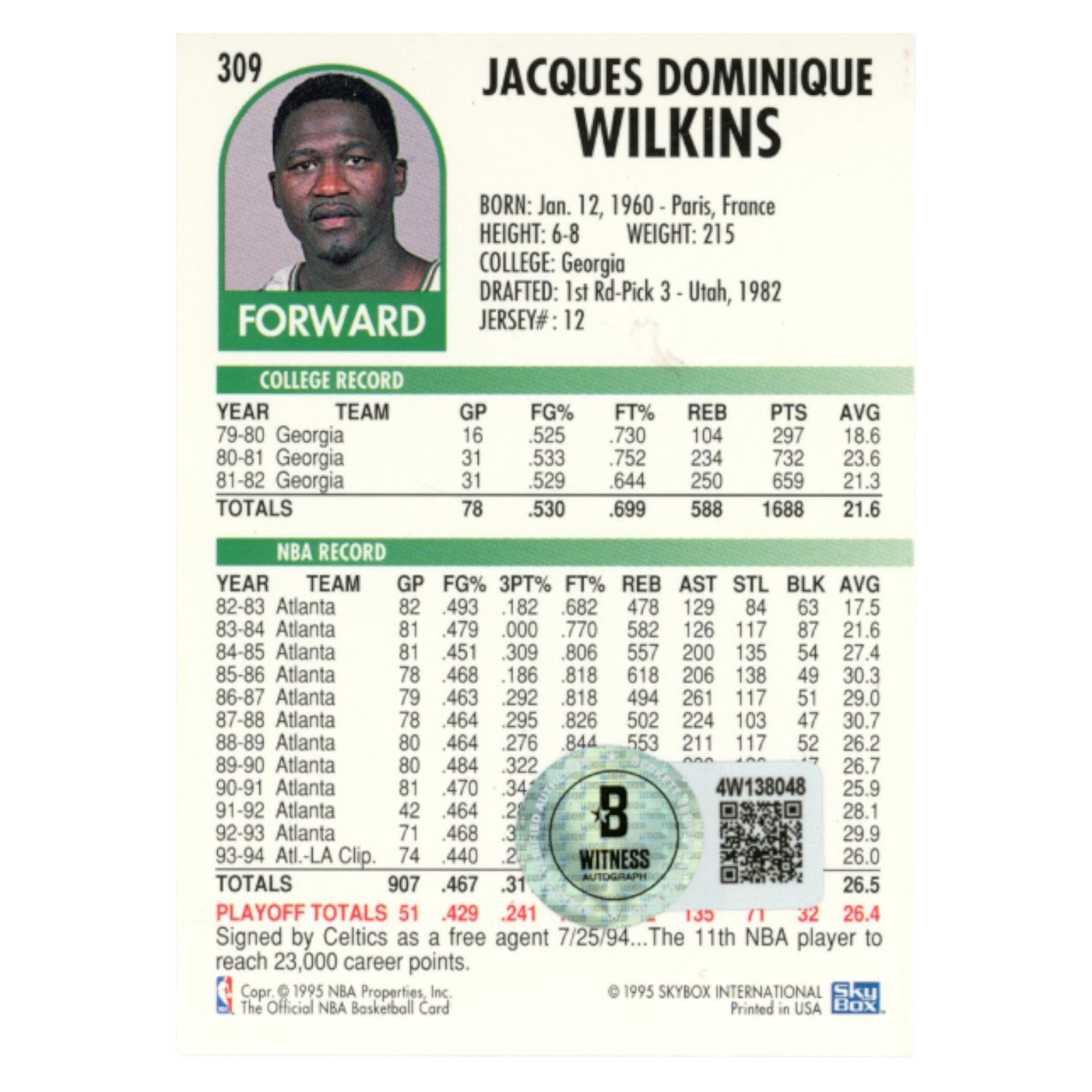 Dominique Wilkins Autographed 1995 NBA Hoops #309 Trading Card Beckett 54234