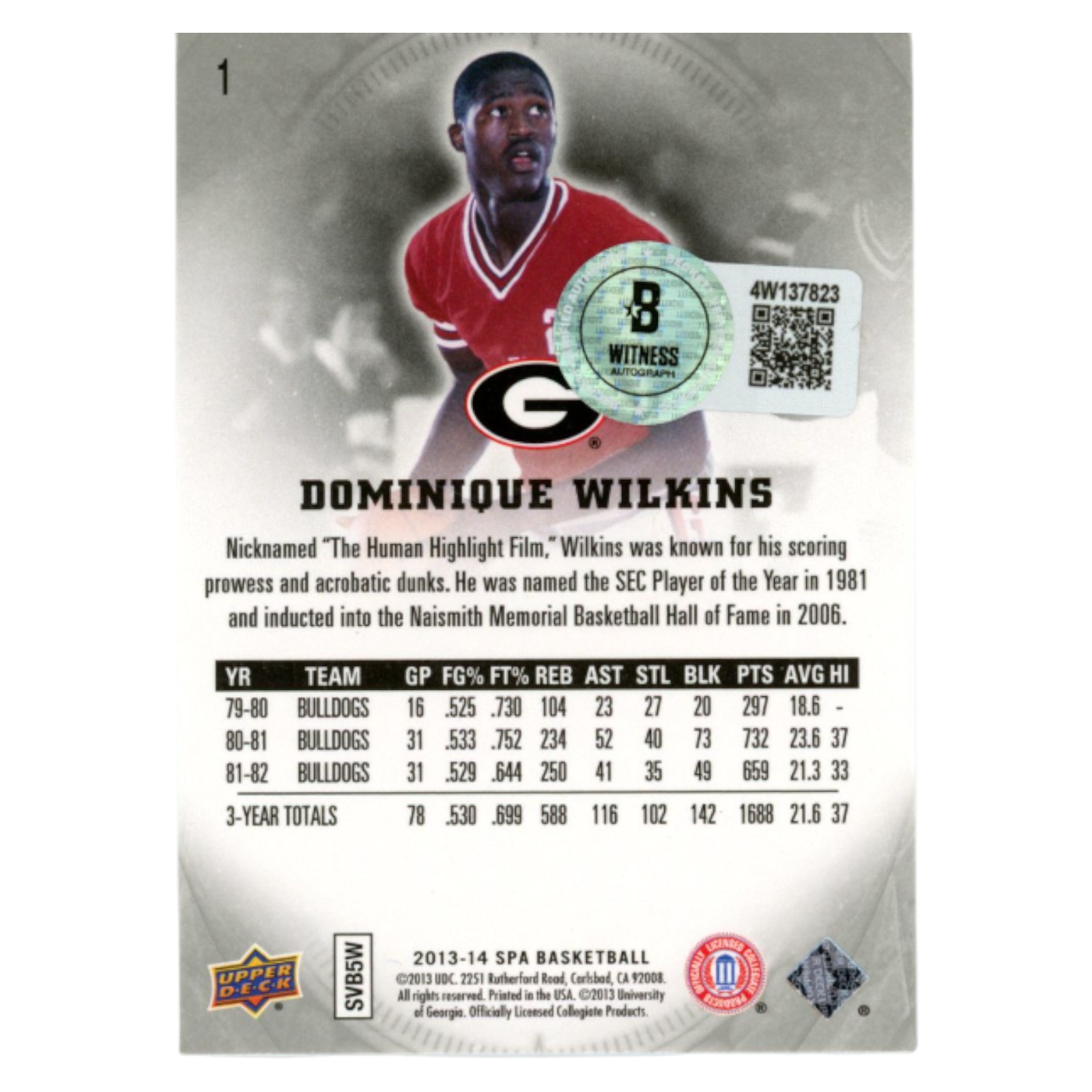 Dominique Wilkins Autographed 2013 Upper Deck #1 Trading Card Beckett 54192