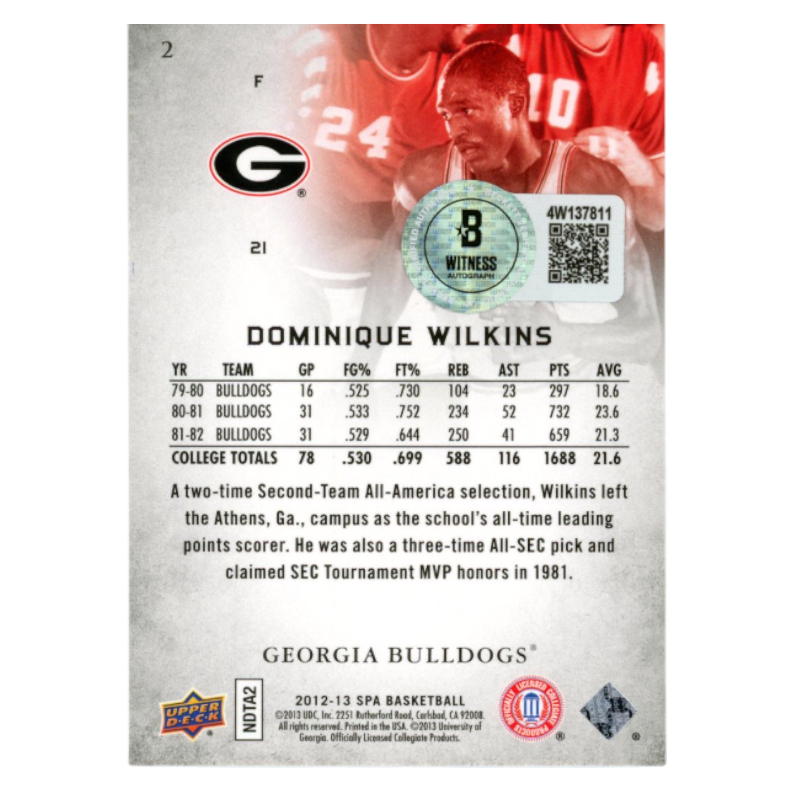 Dominique Wilkins Autographed 2013 Upper Deck #2 Trading Card Beckett 54191