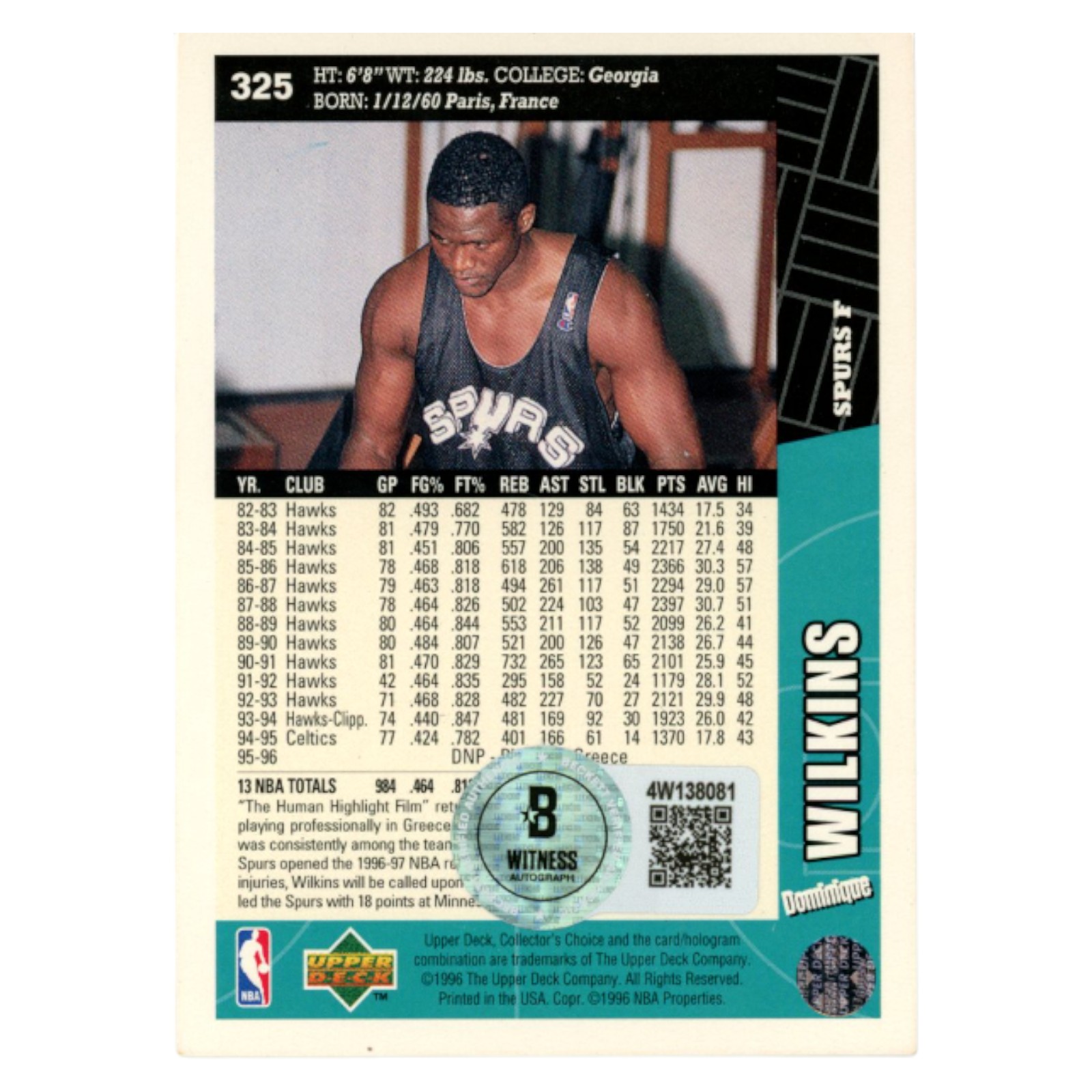 Dominique Wilkins Autographed 96 Upper Deck 325 SMEAR Trading Card Beckett 54180