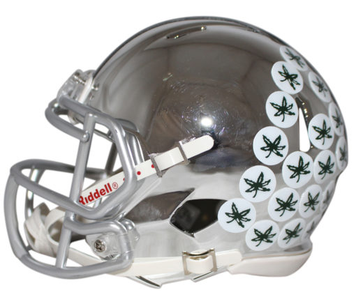 This is an Ohio State Buckeyes chrome mini helmet that was personally autographed by Dwayne Haskins. This helmet includes a certificate of authenticity from Beckett Authentication Services (BAS) and Denver Autographs.