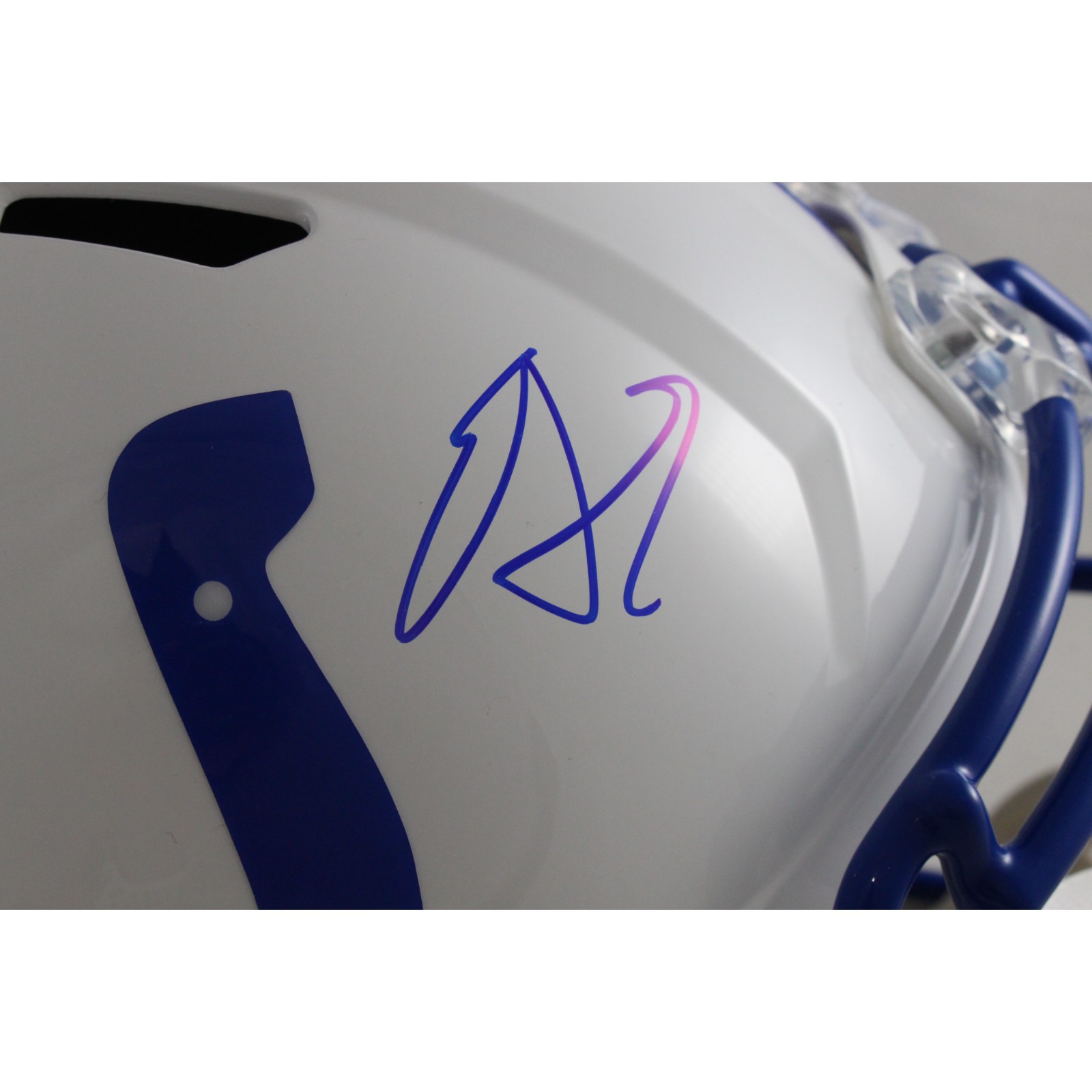 The number in the listing title is just an inventory sku for our records and is not the authentication number. The item pictured is a stock photo. There are multiple quanities of this item. Each of these items is unique because they are individually hand-signed. While the photographs accurately represent the item itself, please note that the signature’s size, exact placement, and strength may differ on the one you receive. This is an Indianapolis Colts Full Size Replica Throwback 1995-2003 Helmet that was personally autographed by Edgerrin James. Includes a certificate of authenticity / hologram from Beckett Authentication Services (BAS) and Denver Autographs. This is a BAS Witnessed Protection Program item which means a Beckett Authentication Service representative was present when this item was being signed. FREE SHIPPING within the USA on orders over $99!