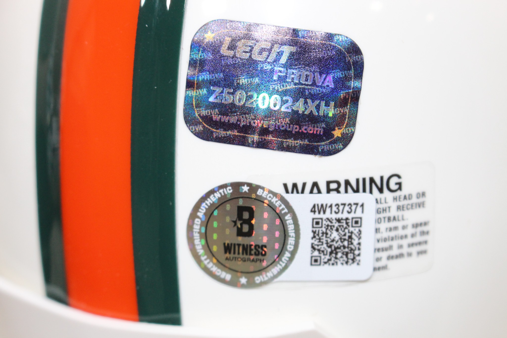 The number in the listing title is just an inventory sku for our records and is not the authentication number. The item pictured is a stock photo. There are multiple quanities of this item. Each of these items is unique because they are individually hand-signed. While the photographs accurately represent the item itself, please note that the signature’s size, exact placement, and strength may differ on the one you receive. This is a Miami Hurricanes VSR4 Mini Helmet that was personally autographed by Edgerrin James. Includes a certificate of authenticity / hologram from Beckett Authentication Services (BAS) and Denver Autographs. This is a BAS Witnessed Protection Program item which means a Beckett Authentication Service representative was present when this item was being signed. FREE SHIPPING within the USA on orders over $99!