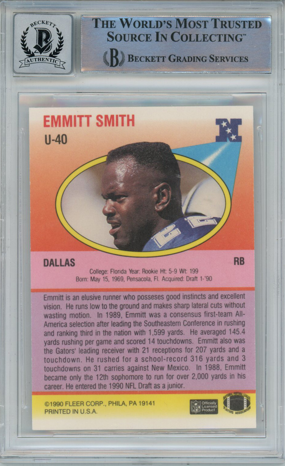 Emmitt Smith Autographed 1990 Fleer U-40 Rookie Card Beckett 10 Slab