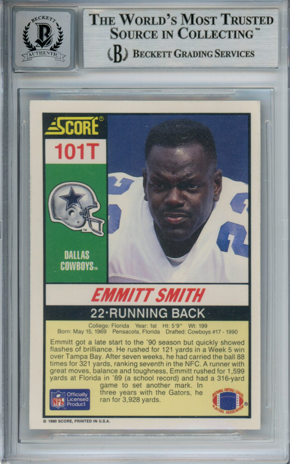 Emmitt Smith Autographed 1990 Score #101T Rookie Card HOF Beckett Slab