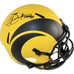 The number in the listing title is just an inventory sku for our records and is not the authentication number. The item pictured is a stock photo. There are multiple quanities of this item. Each of these items is unique because they are individually hand-signed. While the photographs accurately represent the item itself, please note that the signature’s size, exact placement, and strength may differ on the one you receive. This is a Saint Louis Rams Full Size Replica Rave Helmet that was personally autographed by Eric Dickerson includes “HOF” inscription. Includes a certificate of authenticity / hologram from Beckett Authentication Services (BAS) and Denver Autographs. This is a BAS Witnessed Protection Program item which means a Beckett Authentication Service representative was present when this item was being signed.