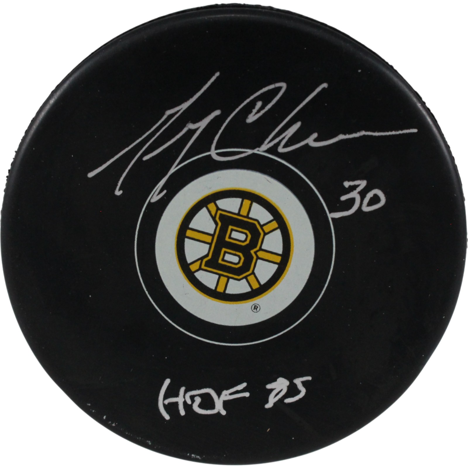 Gerry Cheevers Autographed/Signed Boston Bruins Logo Puck HOF 85 JSA 53948