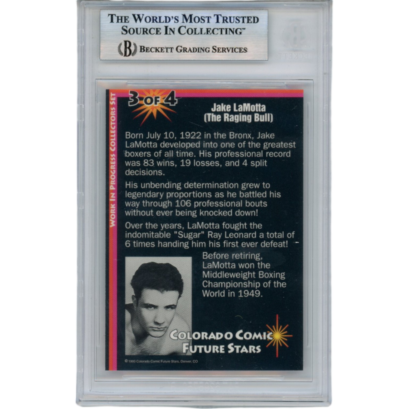 This is a Raging Bull Slabbed Trading Card that was personally autographed by Jack Lamotta. Includes a certificate of authenticity from Beckett Authentication Services (BAS) and Denver Autographs.