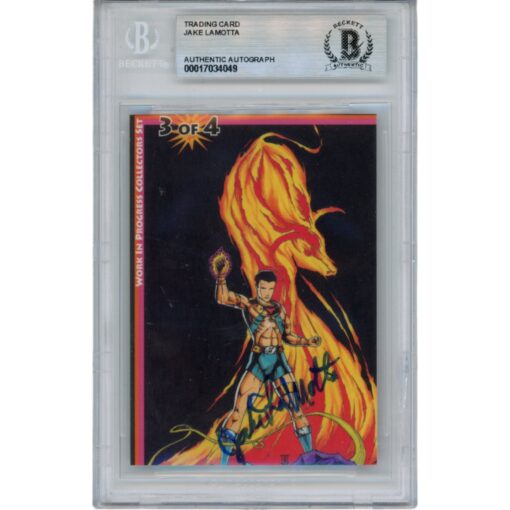 This is a Raging Bull Slabbed Trading Card that was personally autographed by Jack Lamotta. Includes a certificate of authenticity from Beckett Authentication Services (BAS) and Denver Autographs.