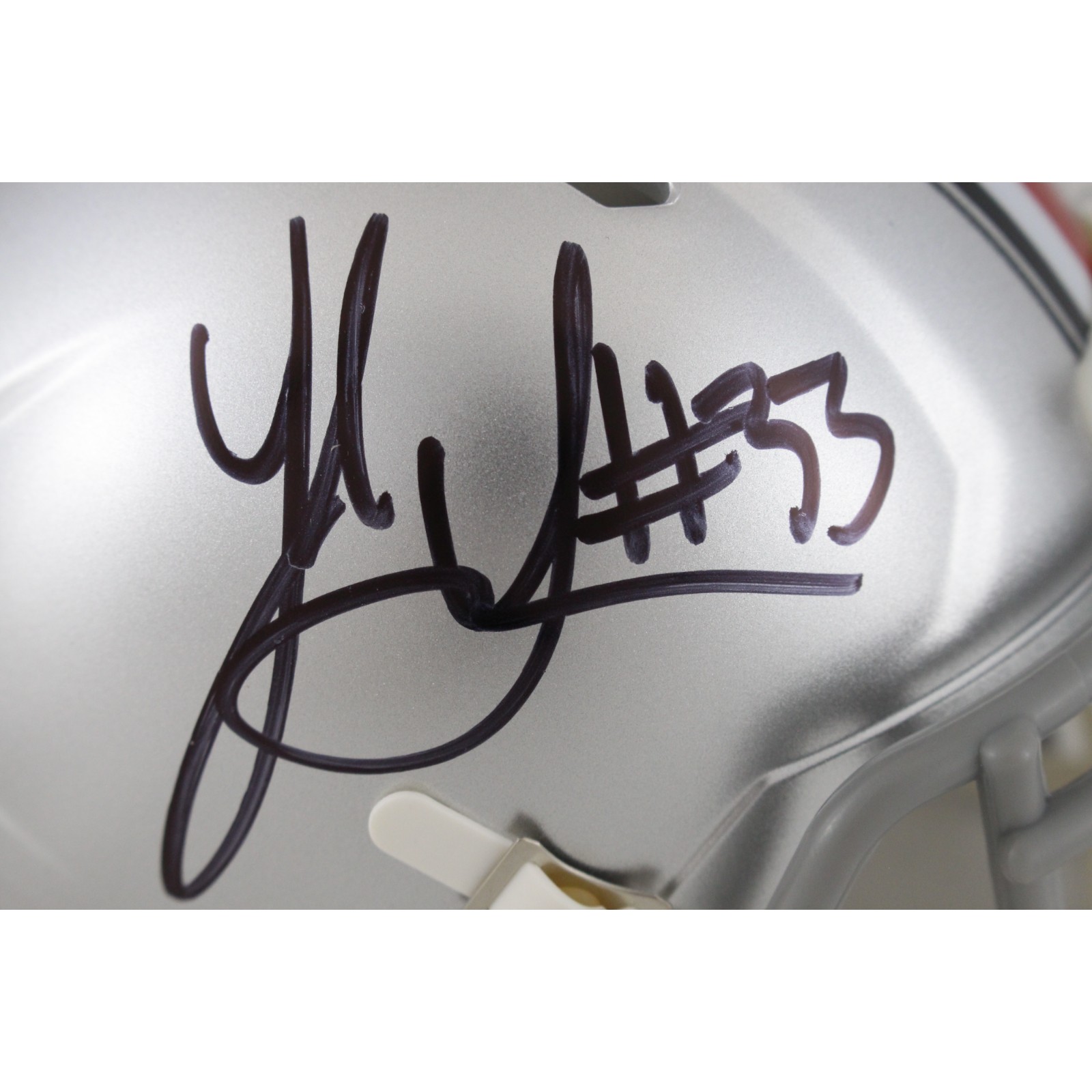 This is an Ohio State Buckeyes Speed Mini Helmet that was personally autographed by Jack Sawyer. Includes a certificate of authenticity from Beckett Authentication Services (BAS) and Denver Autographs.