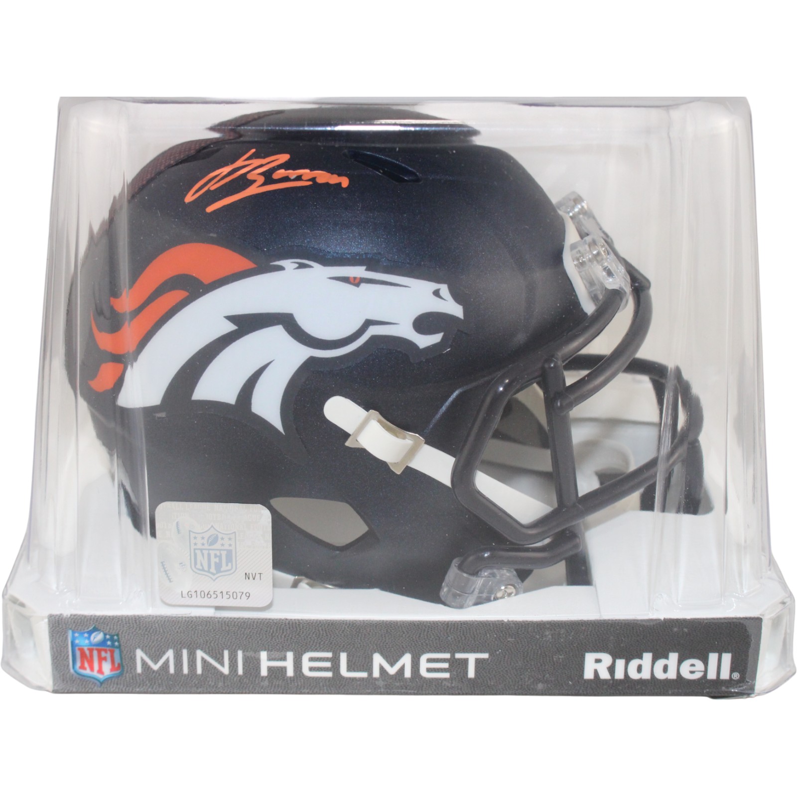 The number in the listing title is just an inventory sku for our records and is not the authentication number. The item pictured is a stock photo. There are multiple quanities of this item. Each of these items is unique because they are individually hand-signed. While the photographs accurately represent the item itself, please note that the signature’s size, exact placement, and strength may differ on the one you receive. This is a Denver Broncos Mini Helmet that was personally autographed by Jahdae Barron. Includes a certificate of authenticity / hologram from Beckett Authentication Services (BAS) and Denver Autographs. This is a BAS Witnessed Protection Program item which means a Beckett Authentication Service representative was present when this item was being signed. FREE SHIPPING within the USA on orders over $99!