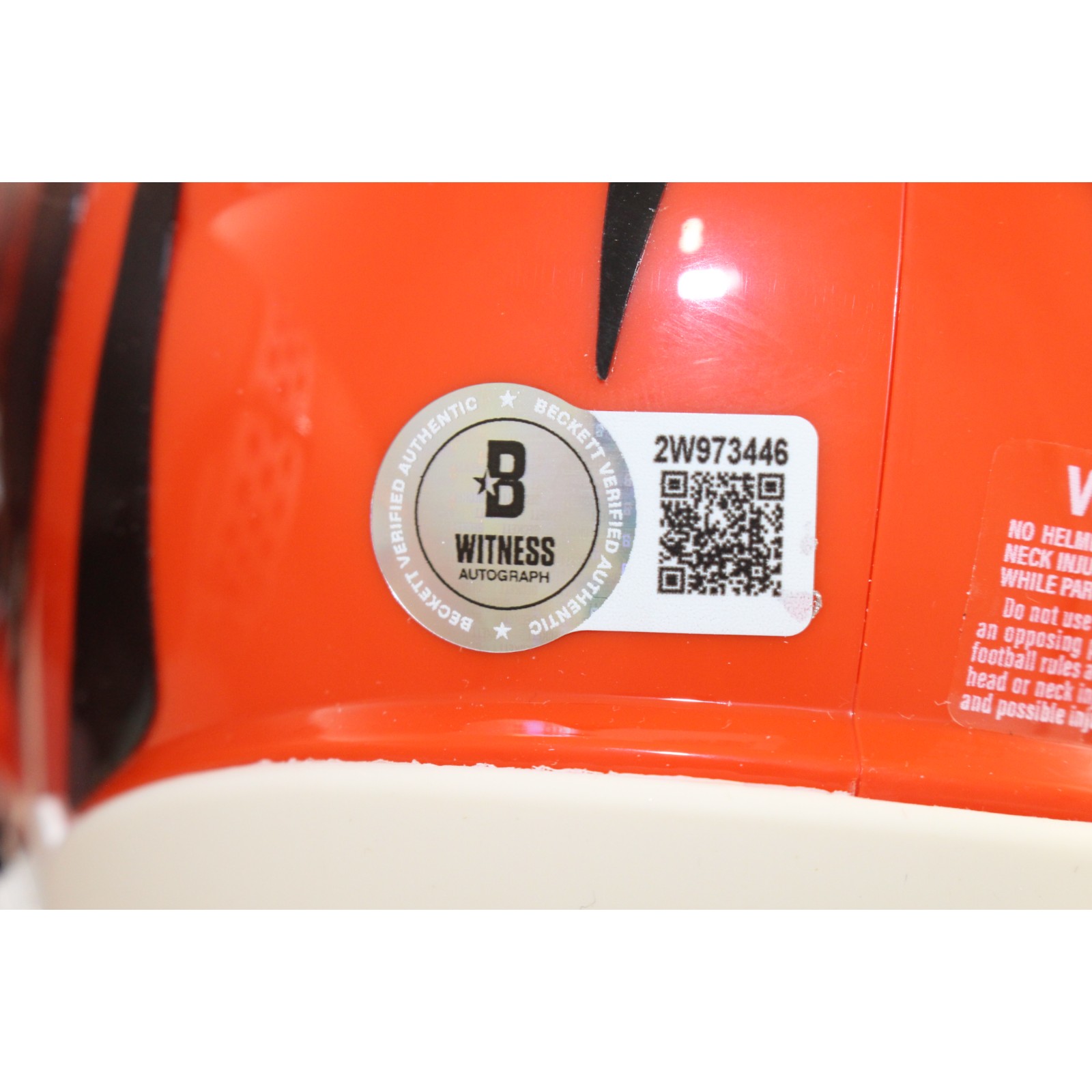 The number in the listing title is just an inventory sku for our records and is not the authentication number. The item pictured is the exact item you will receive, please see photos for condition. This is a Cincinnati Bengals Mini Helmet that was personally autographed by Ja’Marr Chase. Please note this helmet is signed on the left hand side. Includes a certificate of authenticity / hologram from Beckett Authentication Services (BAS) and Denver Autographs.