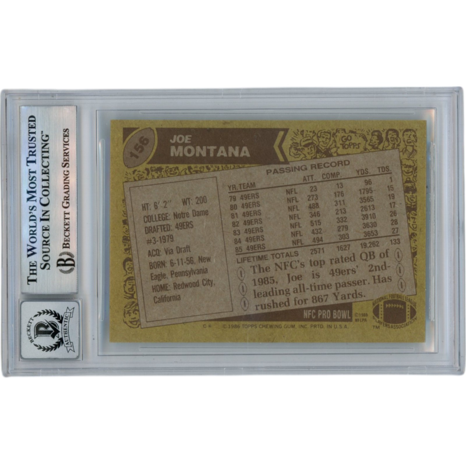 Joe Montana Autographed/Signed 1986 Topps #156 Slab Trading Card Beckett 49897