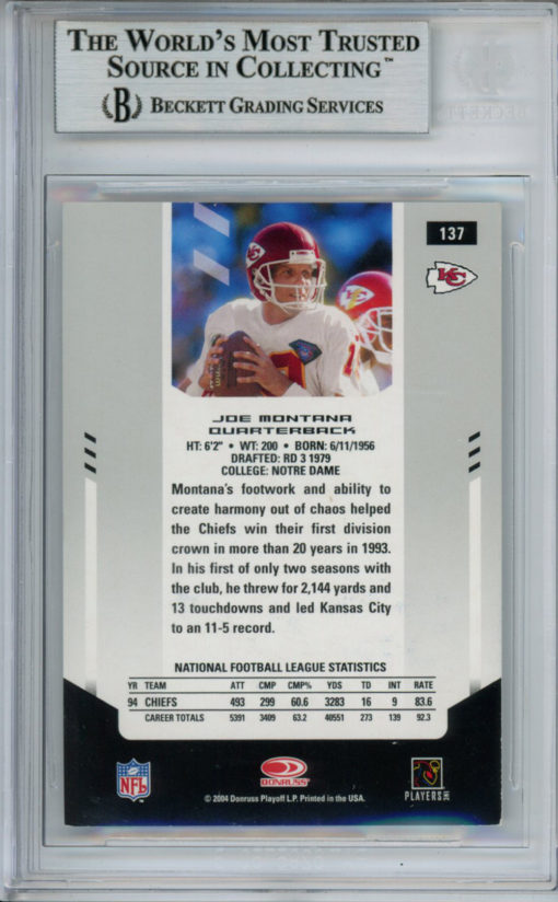 Joe Montana Signed 2004 Leaf Certified #137 Trading Card Beckett Slab