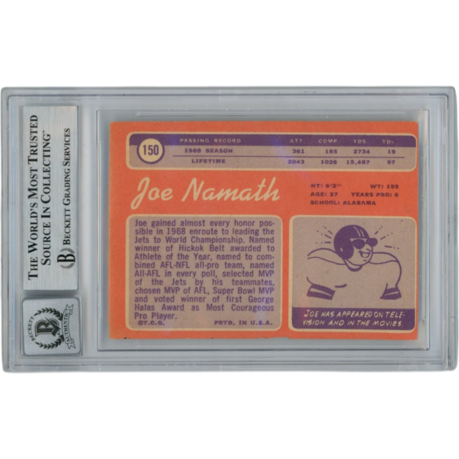 Joe Namath Autographed 1970 Topps #150 HOF Slabbed Trading Card Beckett 53336