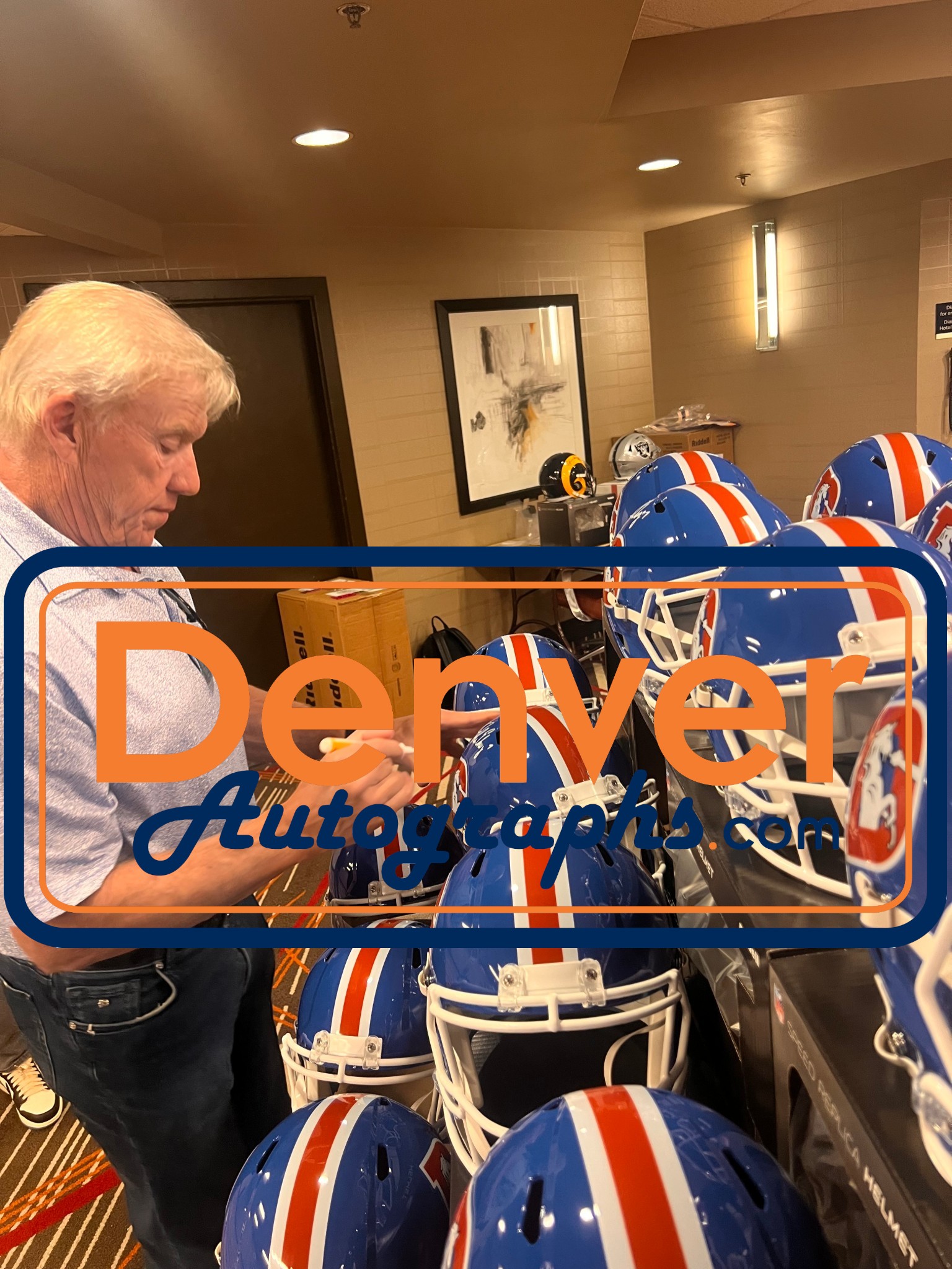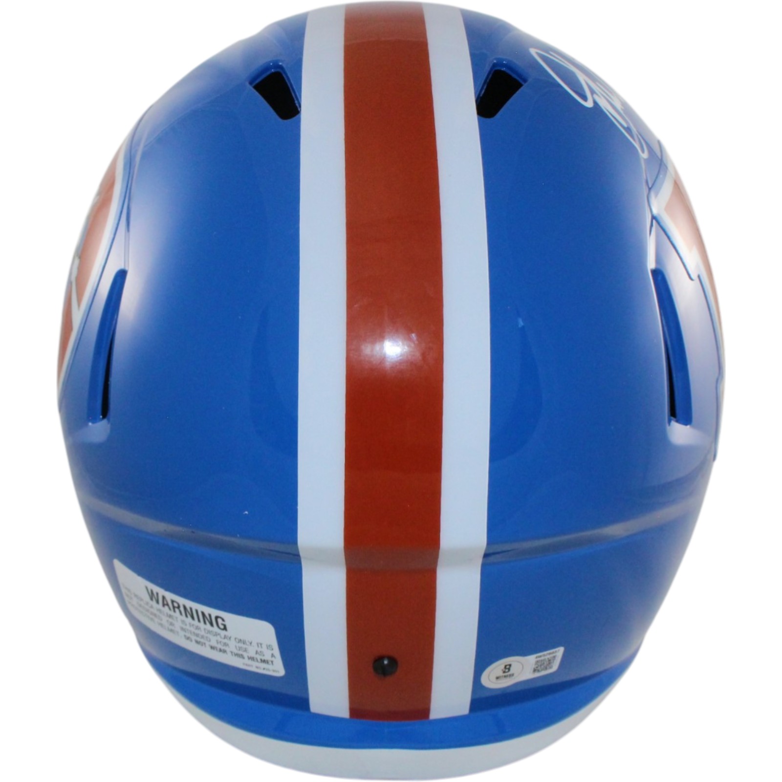 The number in the listing title is just an inventory sku for our records and is not the authentication number. The item pictured is a stock photo. There are multiple quanities of this item. Each of these items is unique because they are individually hand-signed. While the photographs accurately represent the item itself, please note that the signature’s size, exact placement, and strength may differ on the one you receive. This is a Denver Broncos Full Size Replica Throwback 1975-1996 Helmet that was personally autographed by John Elway. Includes a certificate of authenticity / hologram from Beckett Authentication Services (BAS) and Denver Autographs. This is a BAS Witnessed Protection Program item which means a Beckett Authentication Service representative was present when this item was being signed. FREE SHIPPING within the USA on orders over $99!