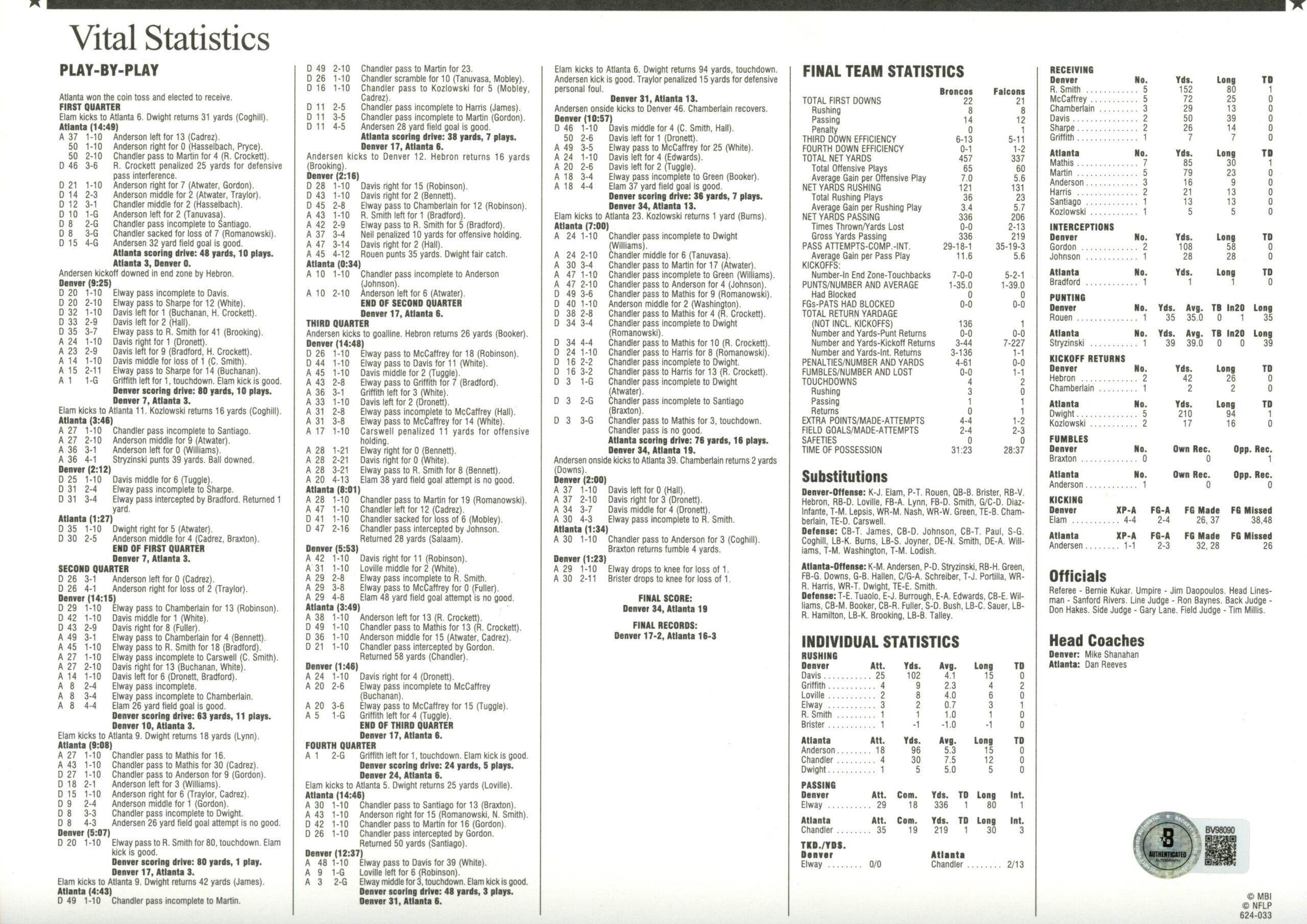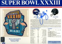 The number in the listing title is just an inventory sku for our records and is not the authentication number. The item pictured is the exact item you will receive please see photos for condition. This is a Denver Broncos Super Bowl XXXIII Willabee & Ward Patch Stat Card that was personally autographed by John Elway. Includes a certificate of authenticity / hologram from Beckett Authentication Services (BAS) and Denver Autographs. FREE SHIPPING within the USA on orders over $10!