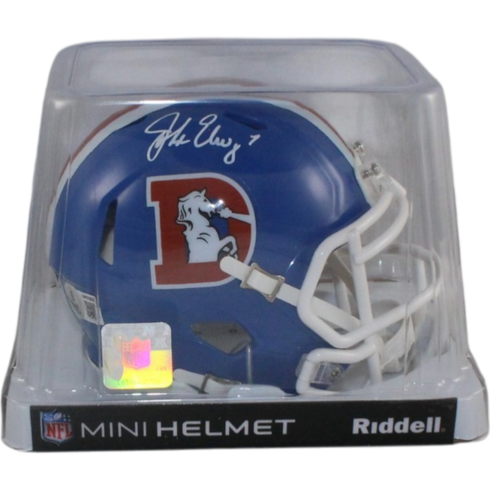 The number in the listing title is just an inventory sku for our records and is not the authentication number. The item pictured is a stock photo. There are multiple quanities of this item. Each of these items is unique because they are individually hand-signed. While the photographs accurately represent the item itself, please note that the signature’s size, exact placement, and strength may differ on the one you receive. This is a Denver Broncos Throwback 1975-1996 Mini Helmet that was personally autographed by John Elway. Includes a certificate of authenticity / hologram from Beckett Authentication Services (BAS) and Denver Autographs. This is a BAS Witnessed Protection Program item which means a Beckett Authentication Service representative was present when this item was being signed. FREE SHIPPING within the USA on orders over $99!