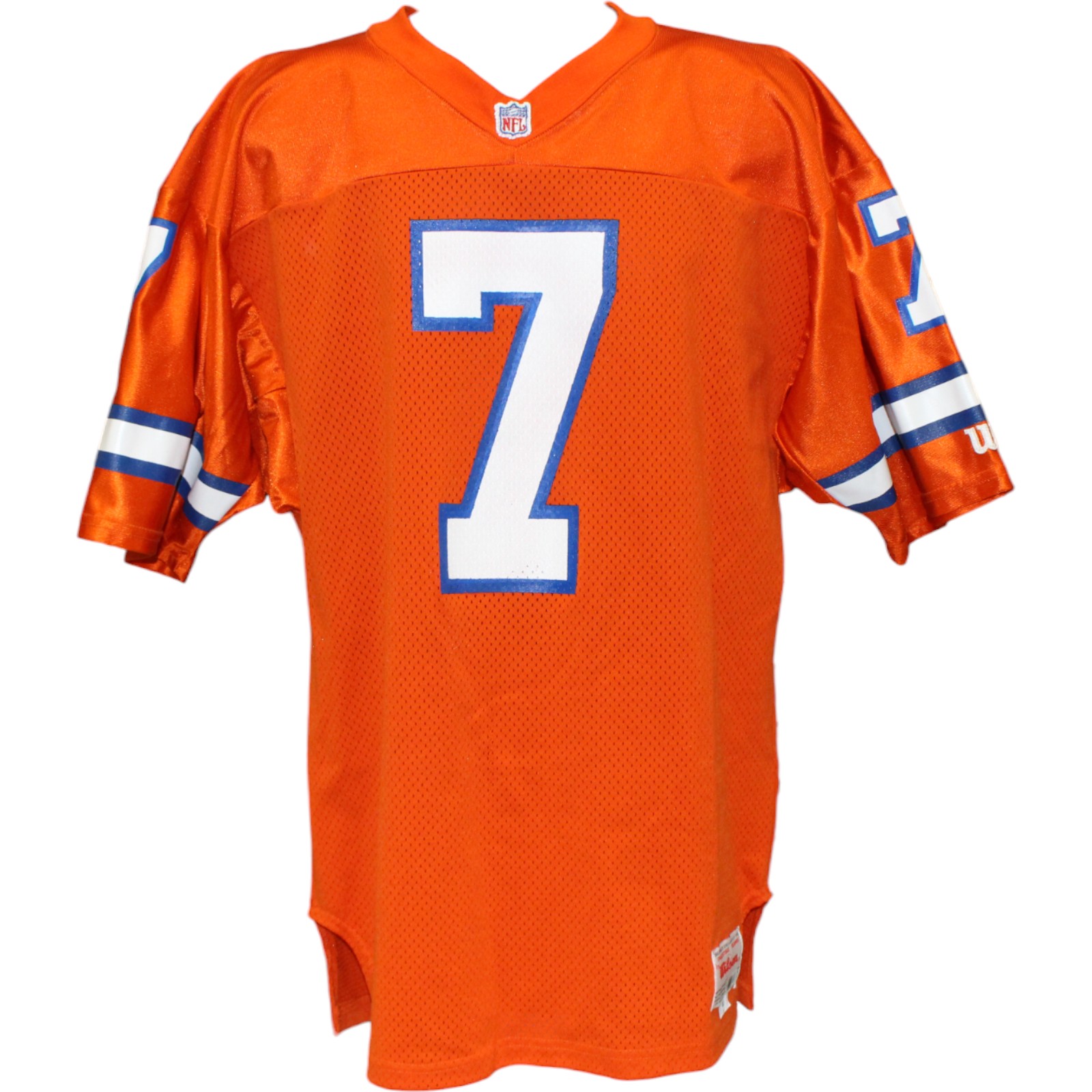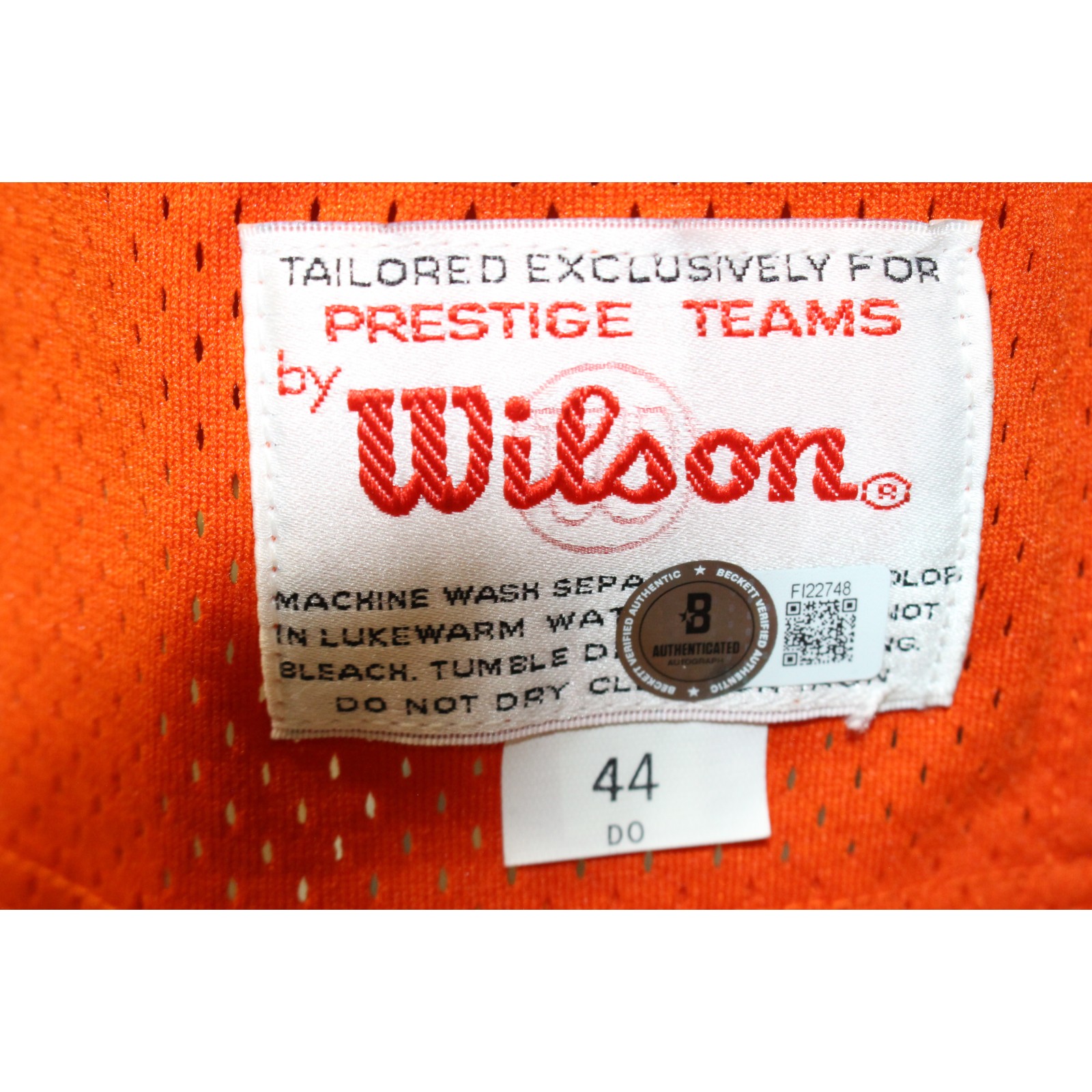 The number in the listing title is just an inventory sku for our records and is not the authentication number. The item pictured is the exact item you will receive, please see photos for condition. This is a Denver Broncos Wilson Orange Size 44 Jersey that was personally autographed by John Elway. Includes a certificate of authenticity from Beckett Authentication Services (BAS) and Denver Autographs. FREE SHIPPING within the USA on orders over $99!