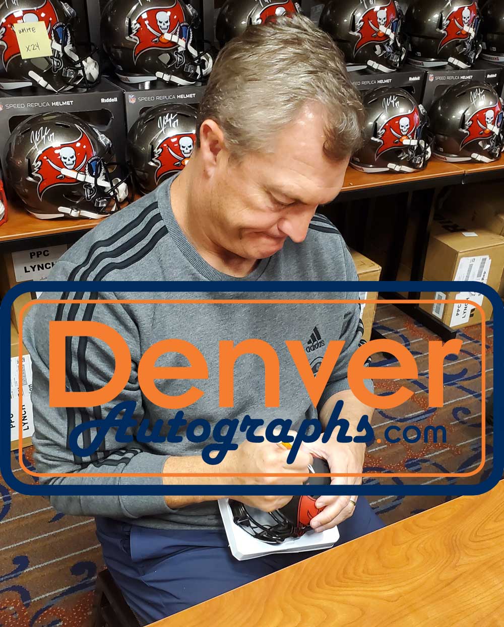 This is a Tampa Bay Buccaneers eclipse mini helmet that was personally autographed by John Lynch. Includes a certificate of authenticity from Beckett Authentication Services (BAS) and Denver Autographs.