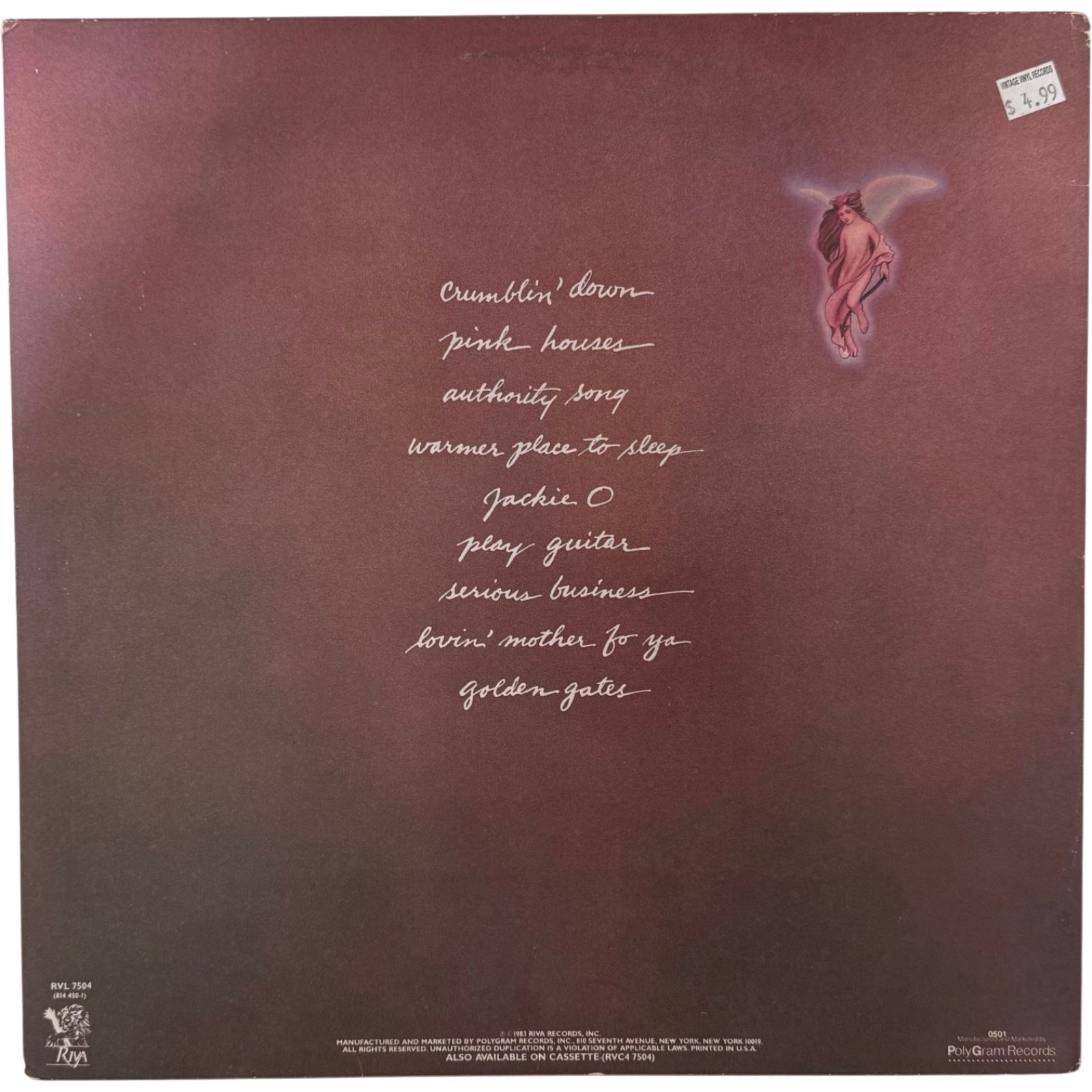 John Mellencamp Autographed 1983 Uh-Huh Vinyl Cover Sleeve Beckett 55658