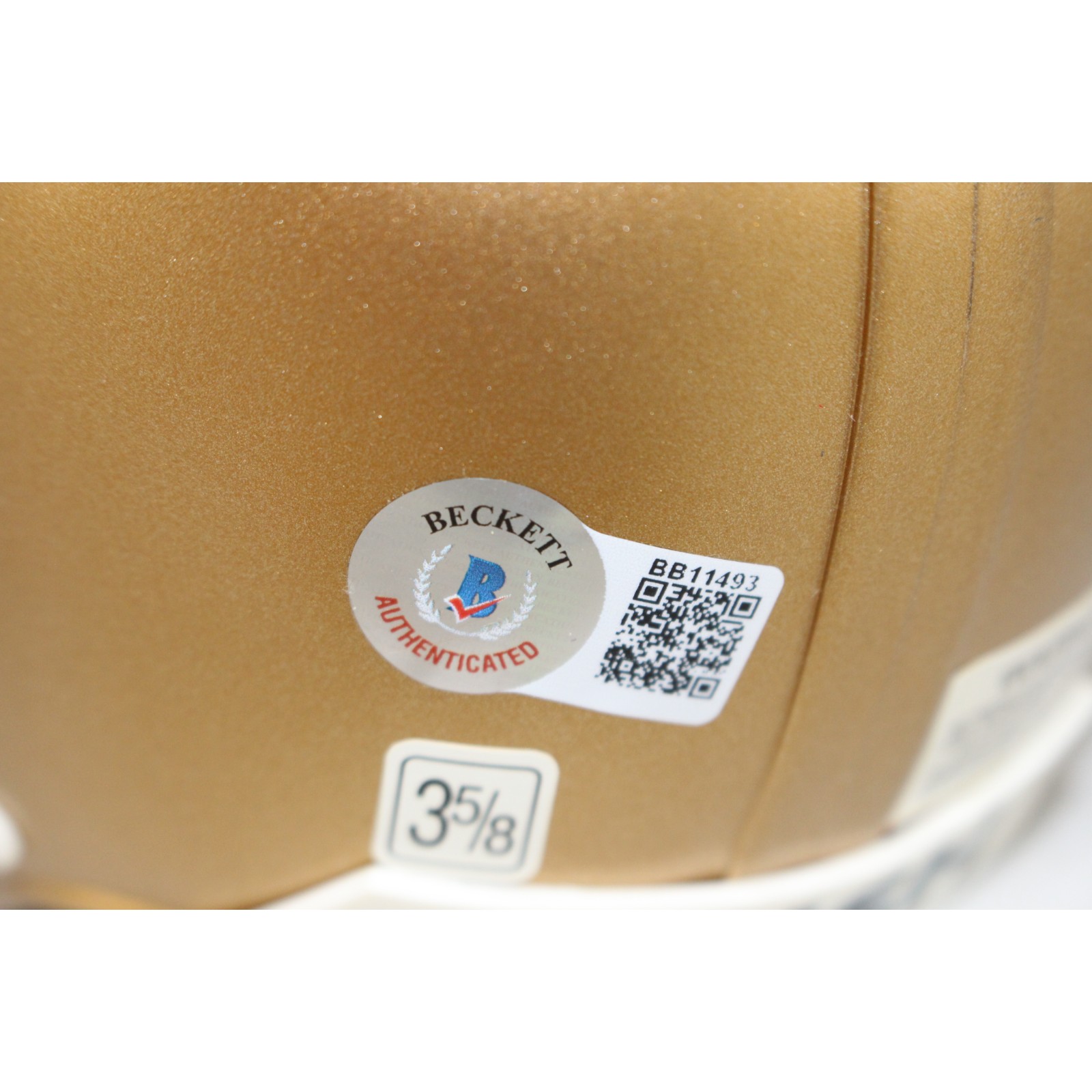 The number in the listing title is just an inventory sku for our records and is not the authentication number. The item pictured is the exact item you will receive, please see photos for condition. This is a Notre Dame Fighting Irish VSR4 Replica Mini Helmet that was personally autographed by Johnny Latner includes “Heisman ’53” inscription. Includes a certificate of authenticity from Beckett Authentication Services (BAS) and Denver Autographs. FREE SHIPPING within the USA on orders over $10!