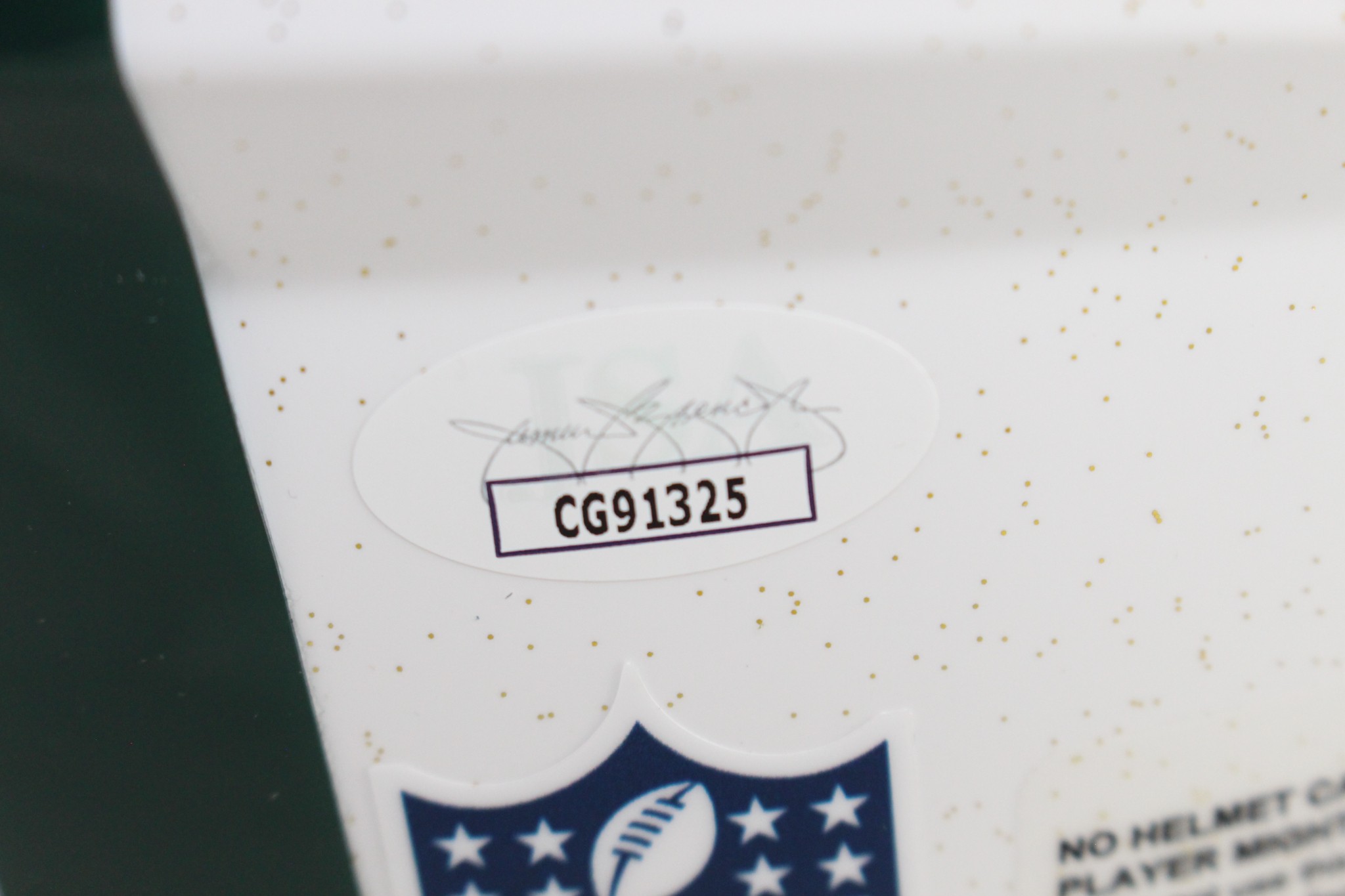 The number in the listing title is just an inventory sku for our records and is not the authentication number. The item pictured is a stock photo unless otherwise noted. This is a Green Bay Packers Full Size Authentic 2024 Alternate Helmet that was personally autographed by Jordan Love. Includes a certificate of authenticity from James Spence Authentication (JSA) and Denver Autographs. FREE SHIPPING within the USA on orders over $99!