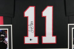 The number in the listing title is just an inventory sku for our records and is not the authentication number. The item pictured is the exact image you will receive, please see photos for condition. This is a Pro Style Black Size XL Jersey with sewn on numbers that is framed in a 35×43 frame. This jersey was personally autographed by Julio Jones. Includes a certificate of authenticity / hologram from Beckett Authentication Services (BAS) and Denver Autographs.