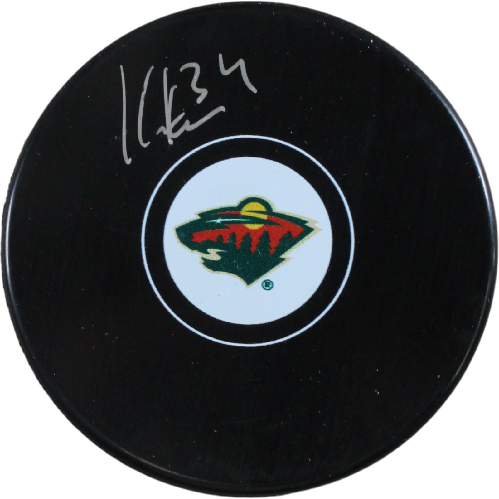 Kaapo Kahkonen Autographed/Signed Minnesota Wild Logo Puck Fanatics 53826
