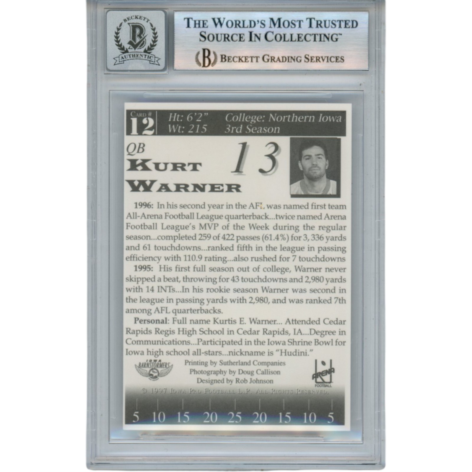 Kurt Warner Autographed 1997 Iowa Barnstormers #12 Trading Card Beckett 50107