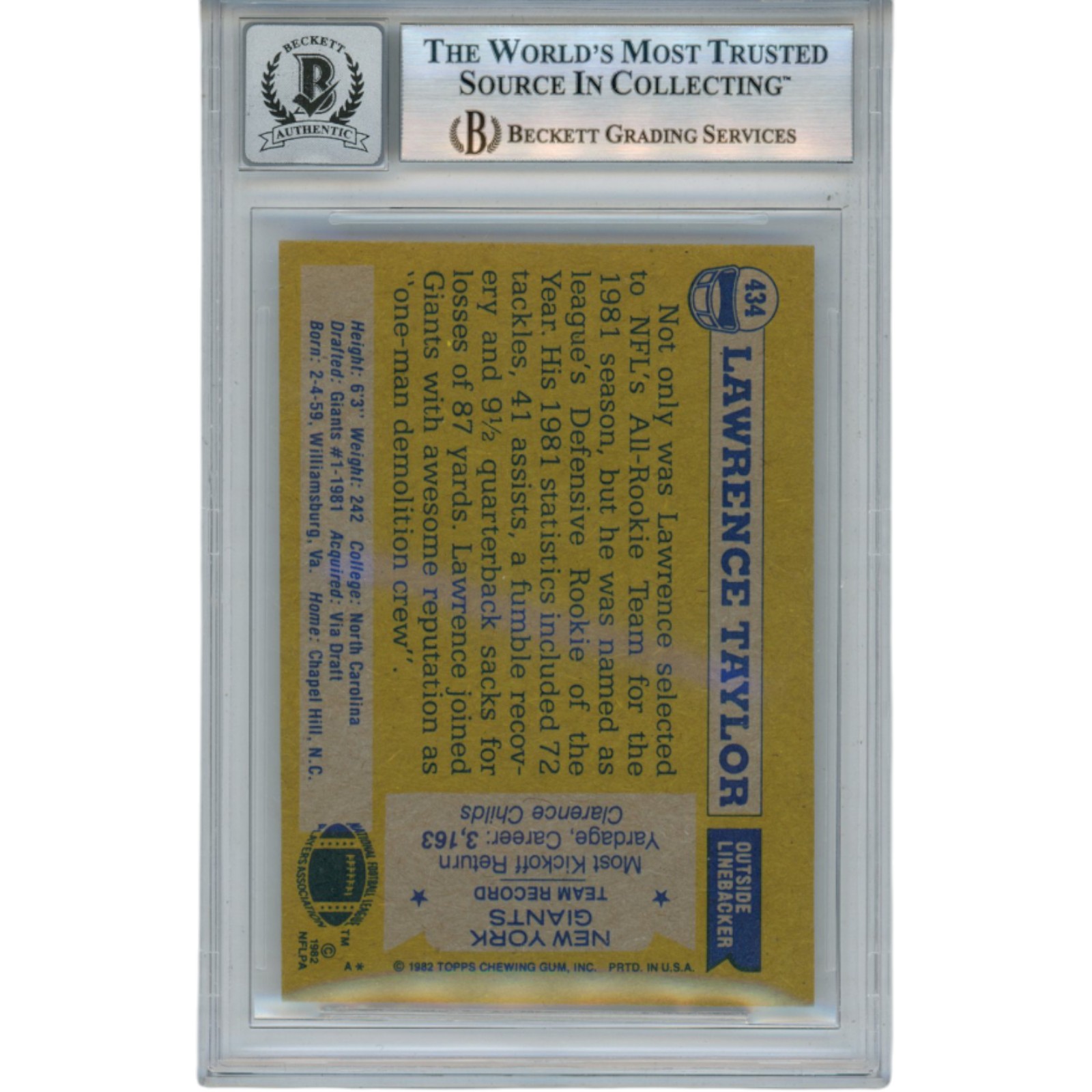 Lawrence Taylor Autographed 1982 Topps #434 Trading Card Slab Beckett 53182