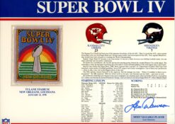 Len Dawson Autographed Kansas City Chiefs SB IV Patch Stat Card Beckett 54939