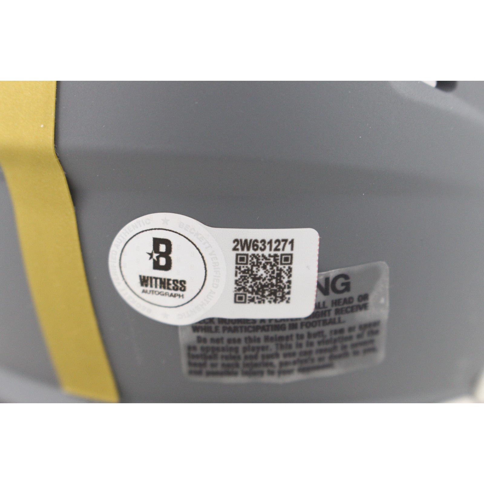This is a Washington Commanders Slate Mini Helmet that was personally autographed by Magic Johnson. Includes a certificate of authenticity from Beckett Authentication Services (BAS) and Denver Autographs.