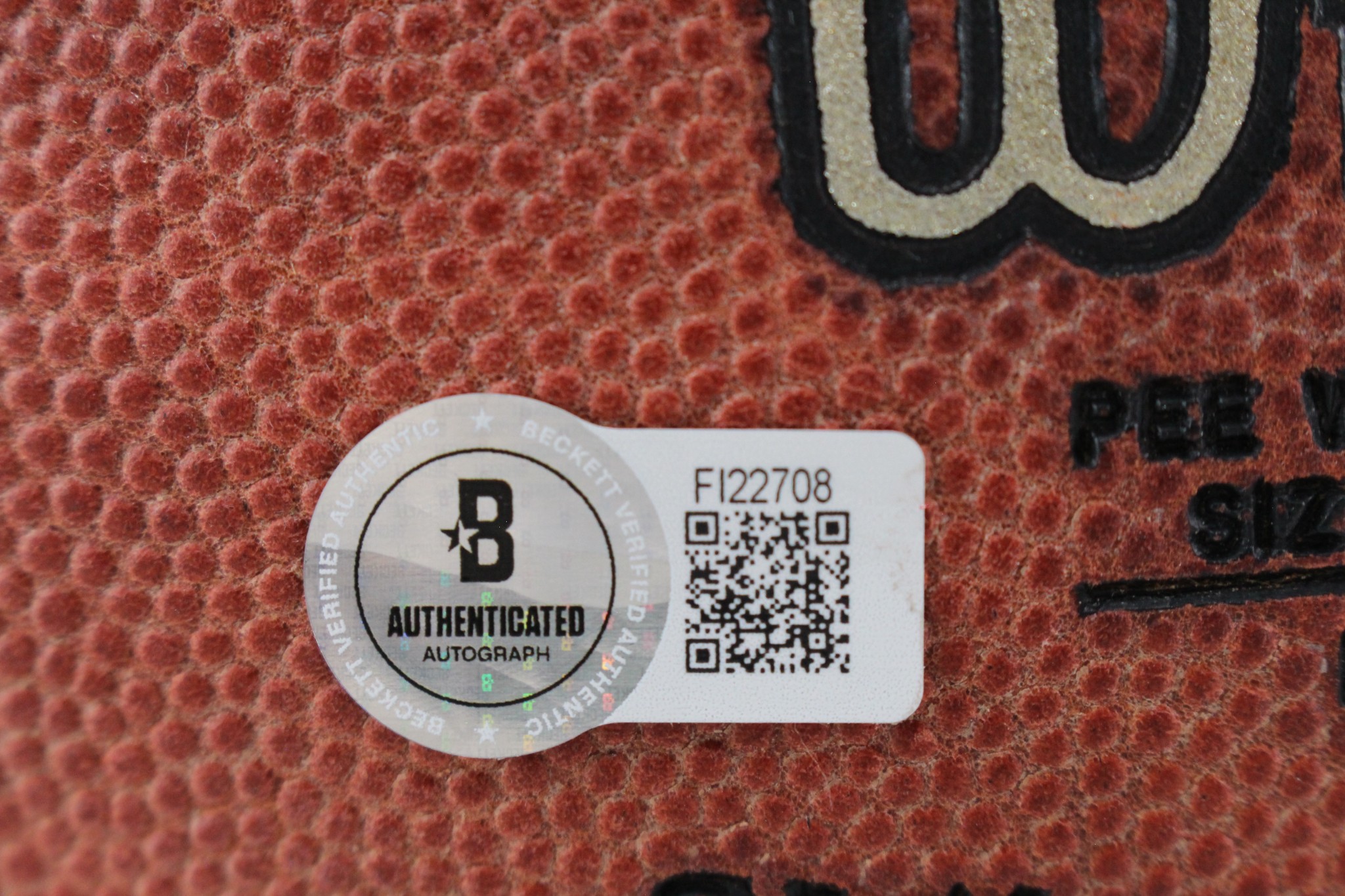 The number in the listing title is just an inventory sku for our records and is not the authentication number. The item pictured is the exact item you will receive, please see photos for condition. This is a Jacksonville Jaguars Wilson PeeWee Football that was personally autographed by Mark Brunell. This Ball is being sold As Is due to the bladder not holding air in the football. Includes a certificate of authenticity from Beckett Authentication Services (BAS) and Denver Autographs. FREE SHIPPING within the USA on orders over $99!