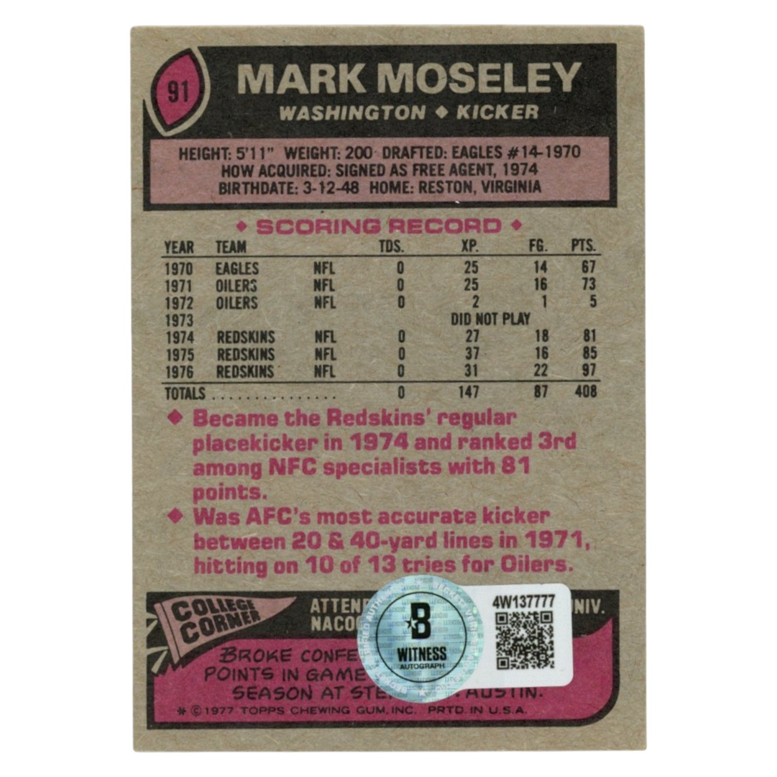 Mark Moseley Autographed Washington Redskins Trading Card Beckett Witness 54689